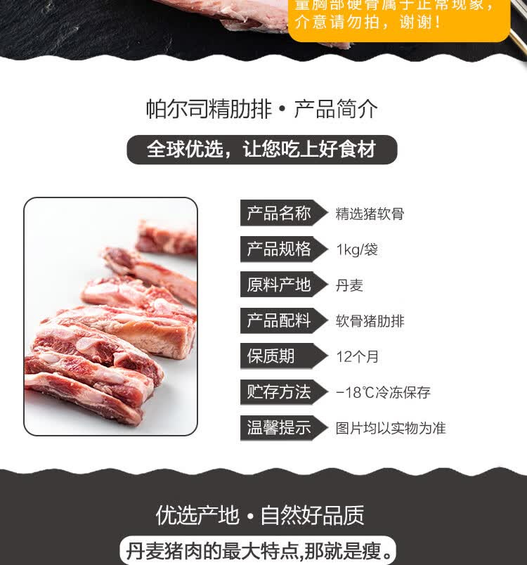 帕尔司(PALES)精选猪软骨1kg 进口猪脆骨软骨 冷冻排骨猪肉生鲜