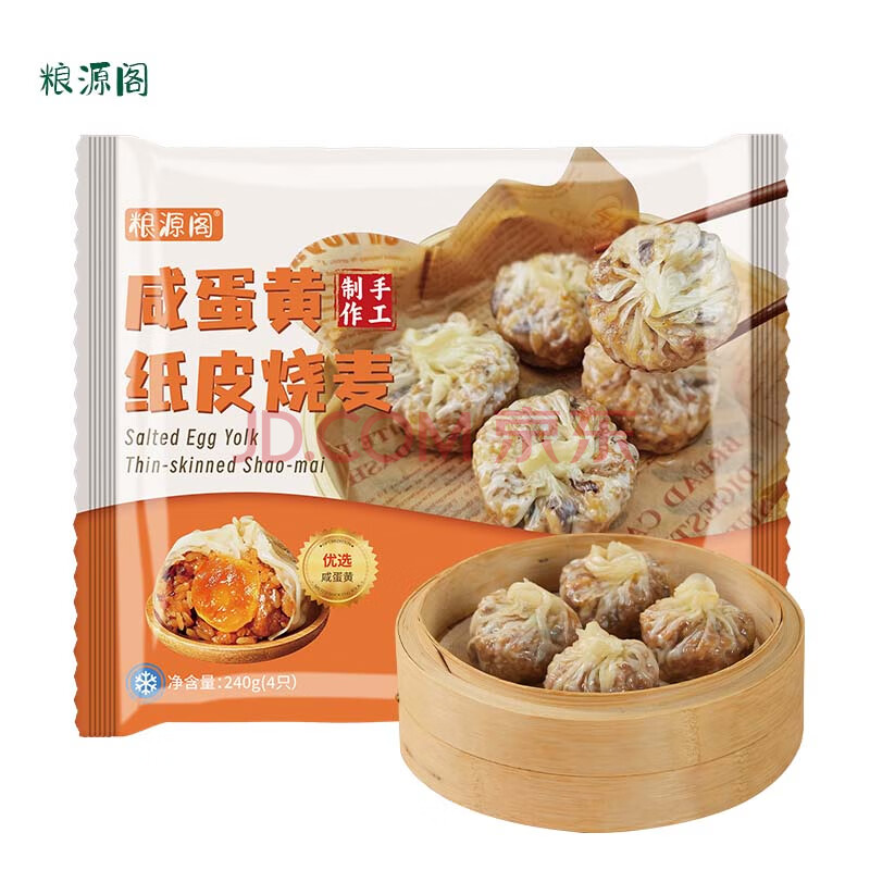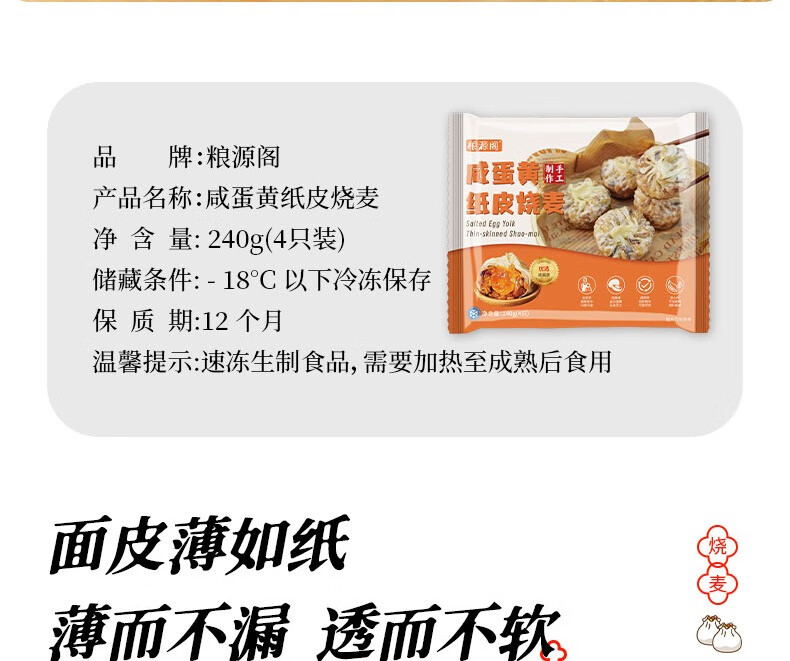 粮源阁 咸蛋黄糯米纸皮烧麦 纯手工烧卖 面点生鲜 微波速食早餐240g*1袋