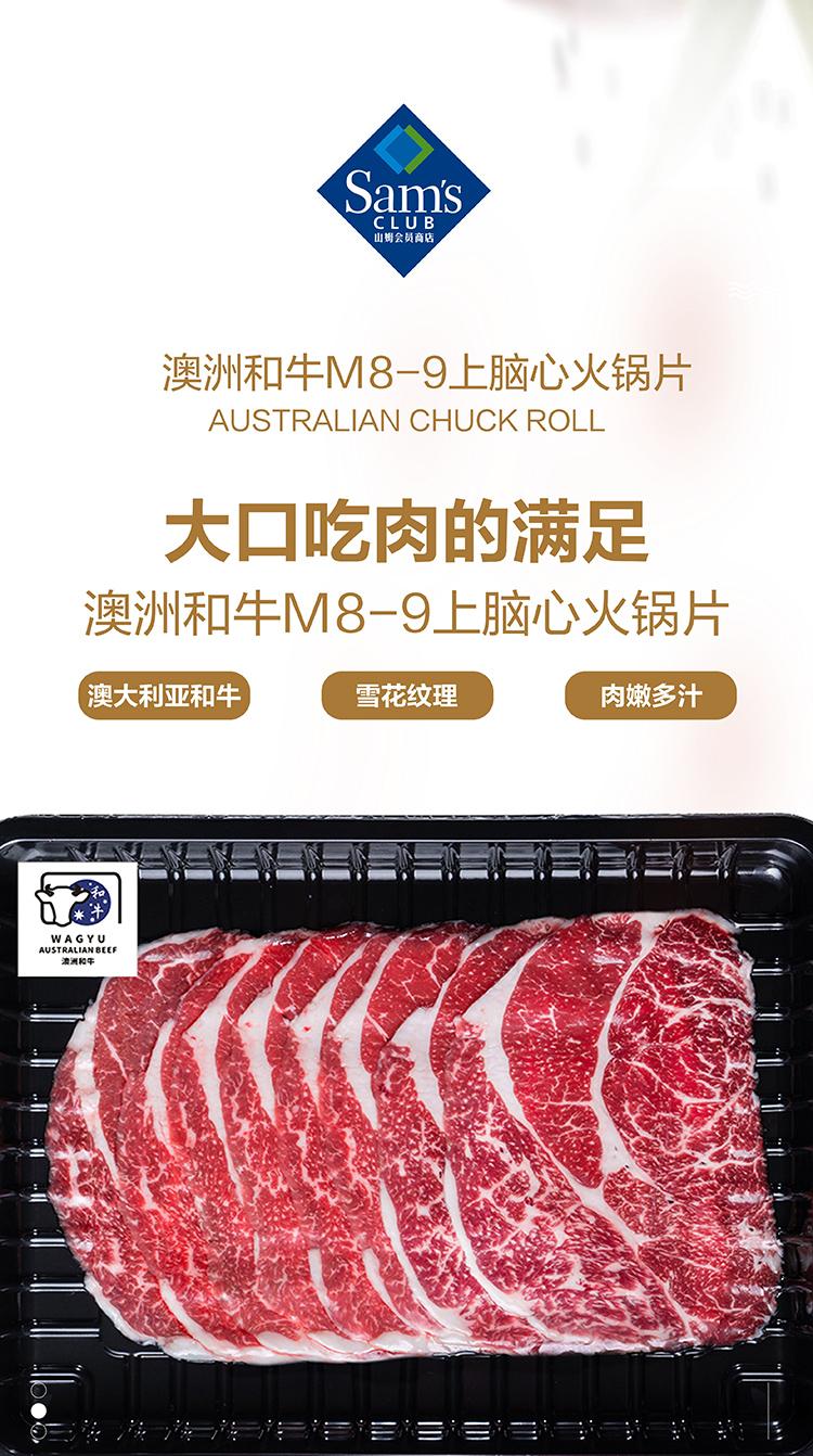 山姆自制山姆 澳洲和牛M8-9上脑心火锅片 500g -