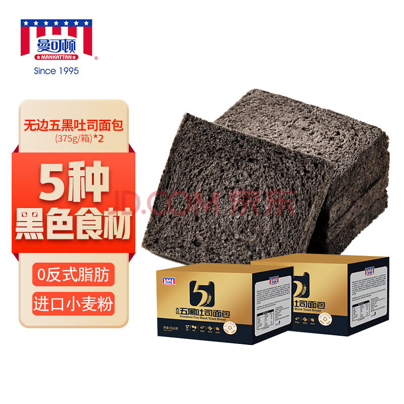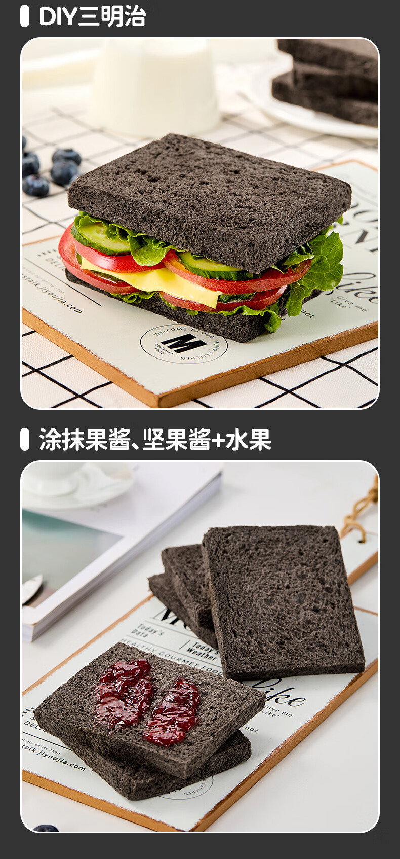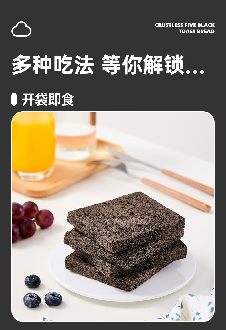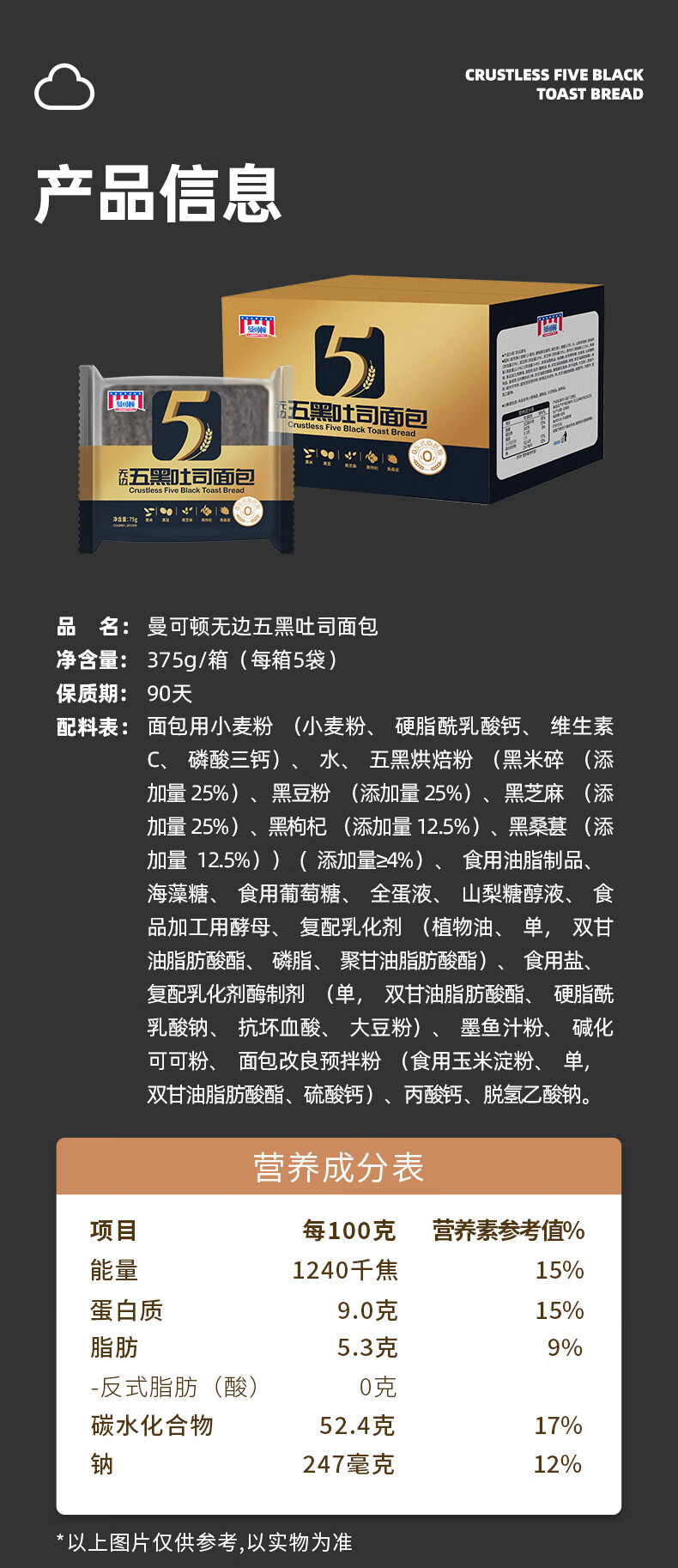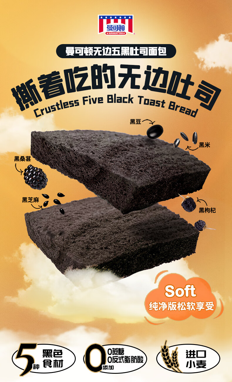 曼可顿 五黑无边吐司面包 375g整箱*2 手撕切片儿童早餐食品 源头直发