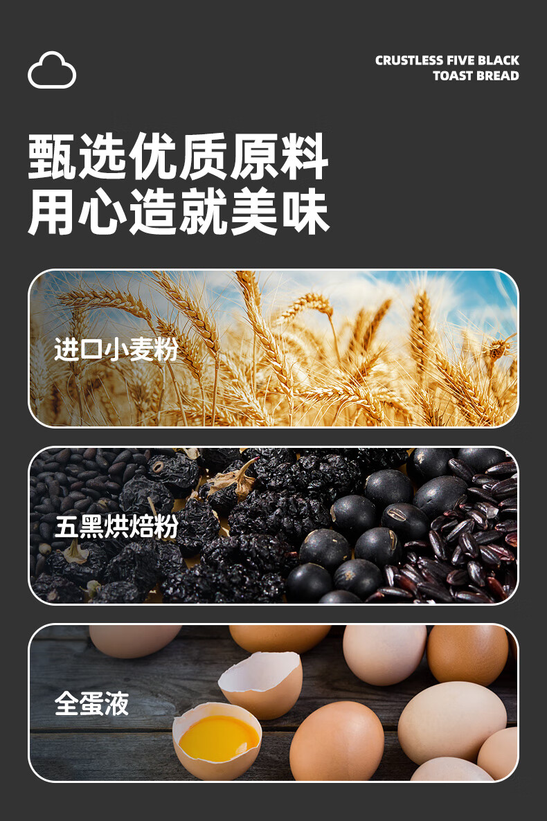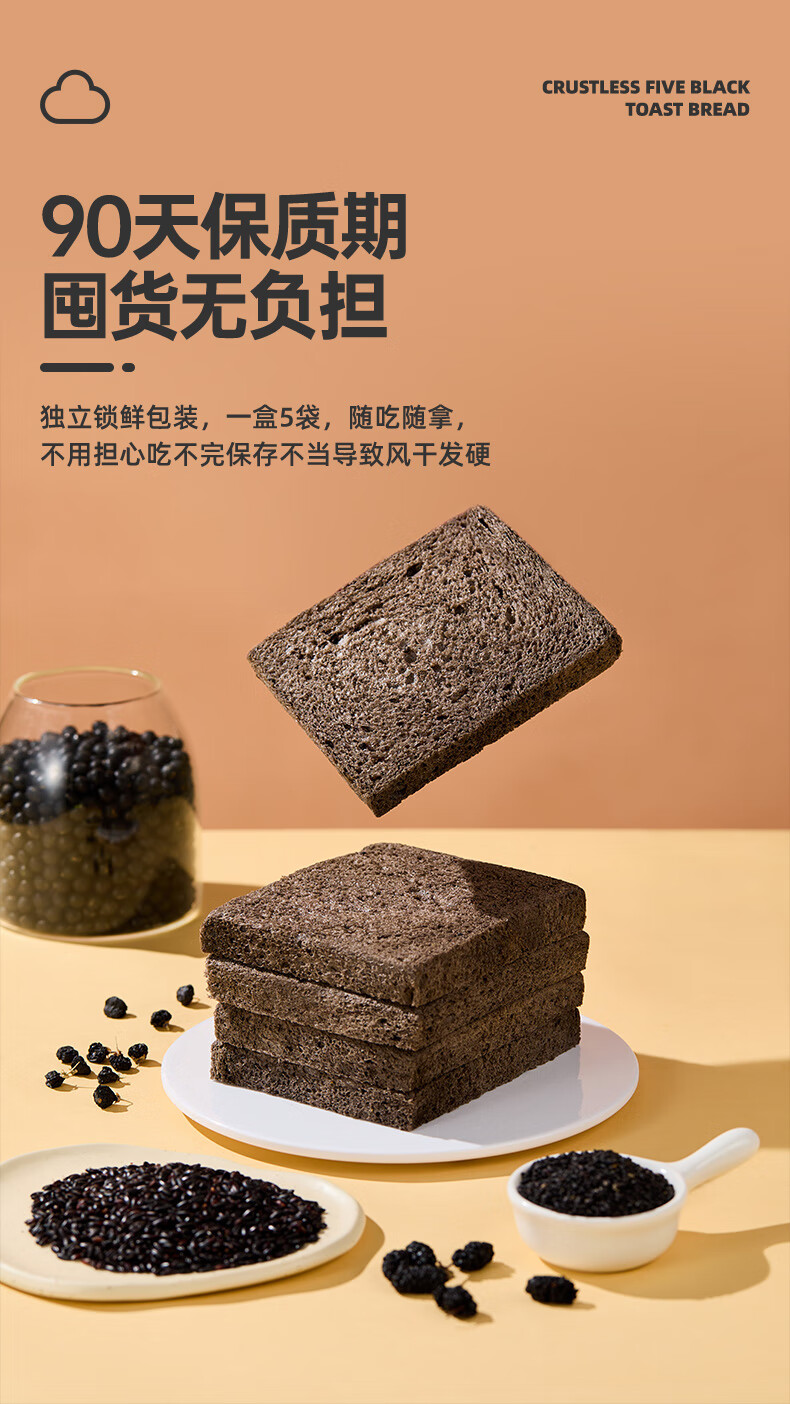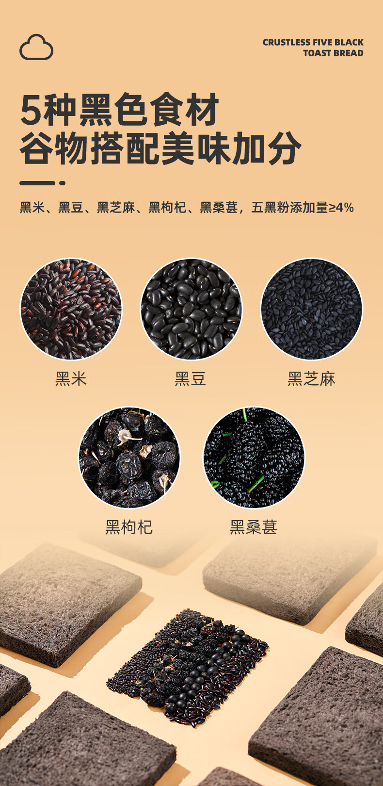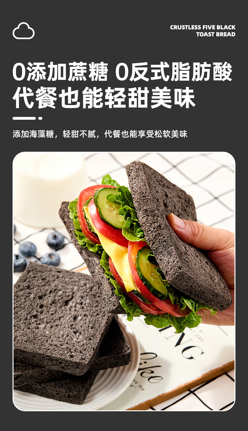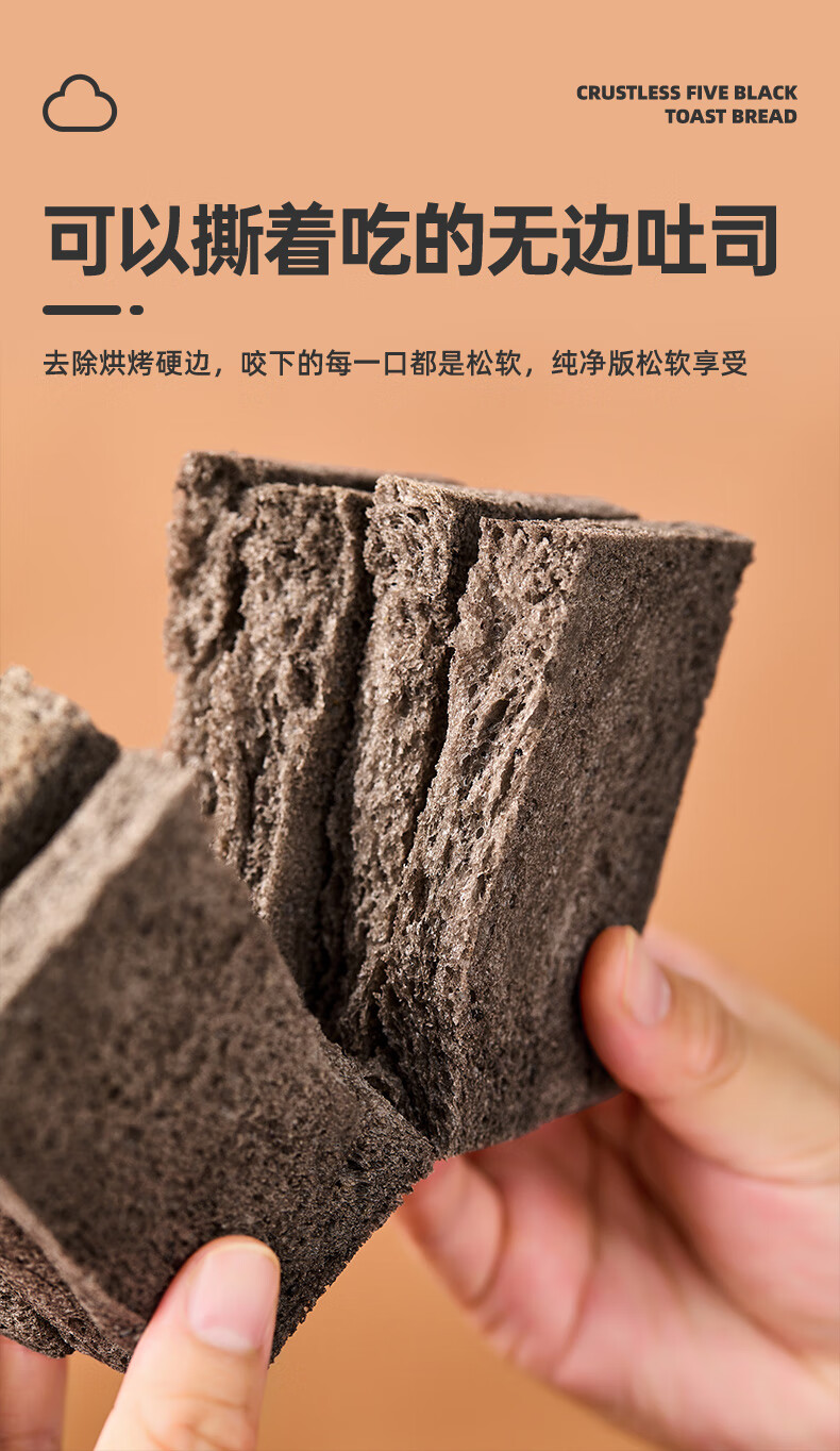 曼可顿 五黑无边吐司面包 375g整箱*2 手撕切片儿童早餐食品 源头直发