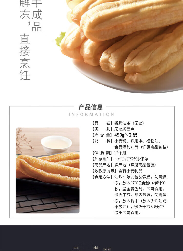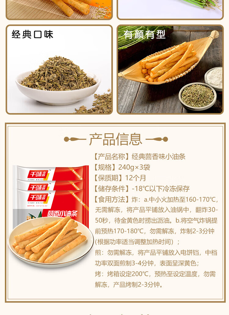 千味央厨 香脆油条 450g*2+茴香小油条240g*3 空气炸锅 火锅 早餐豆浆伴侣