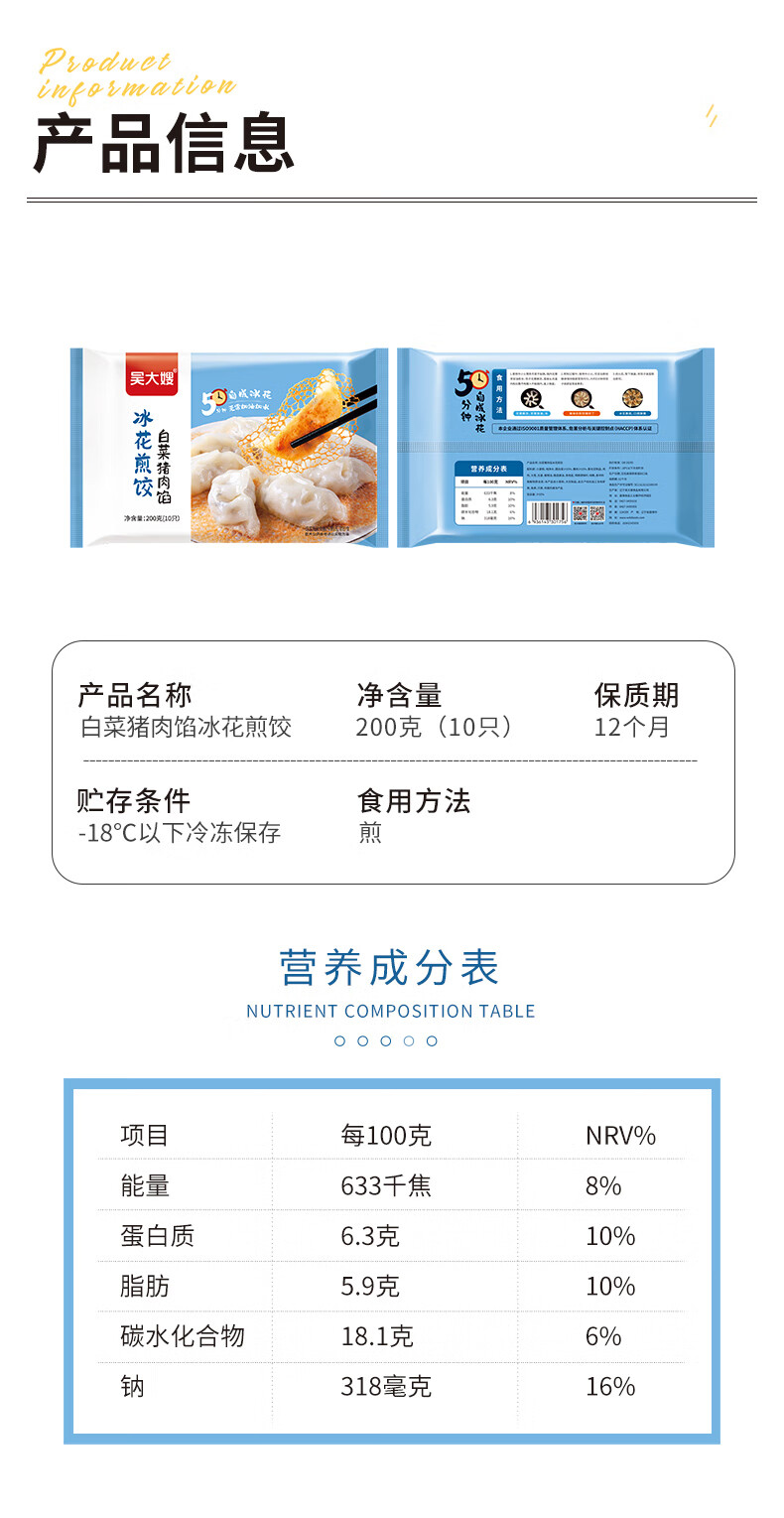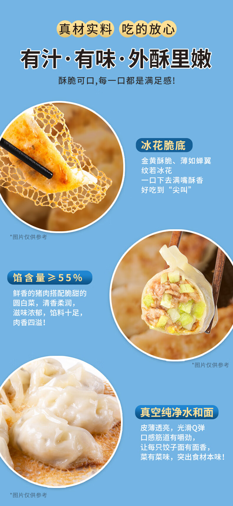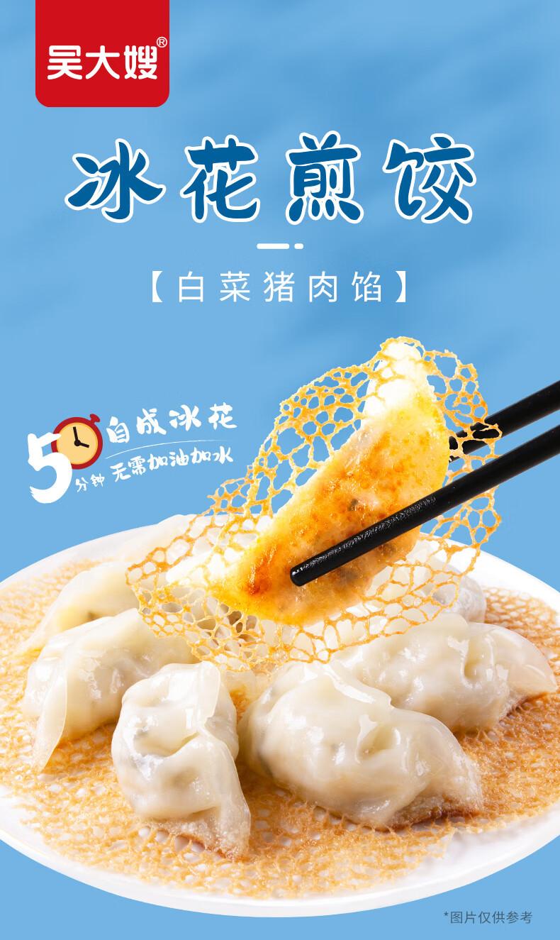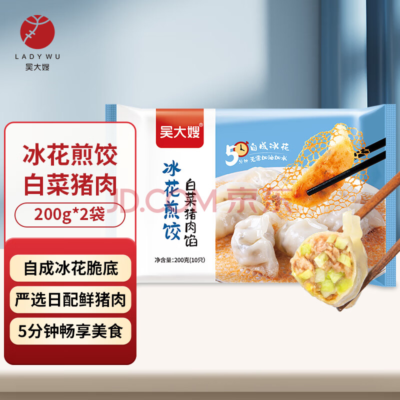 吴大嫂 白菜猪肉锅贴冰花煎饺 400g(200g*2) 20只馅 5分钟无需加水加油