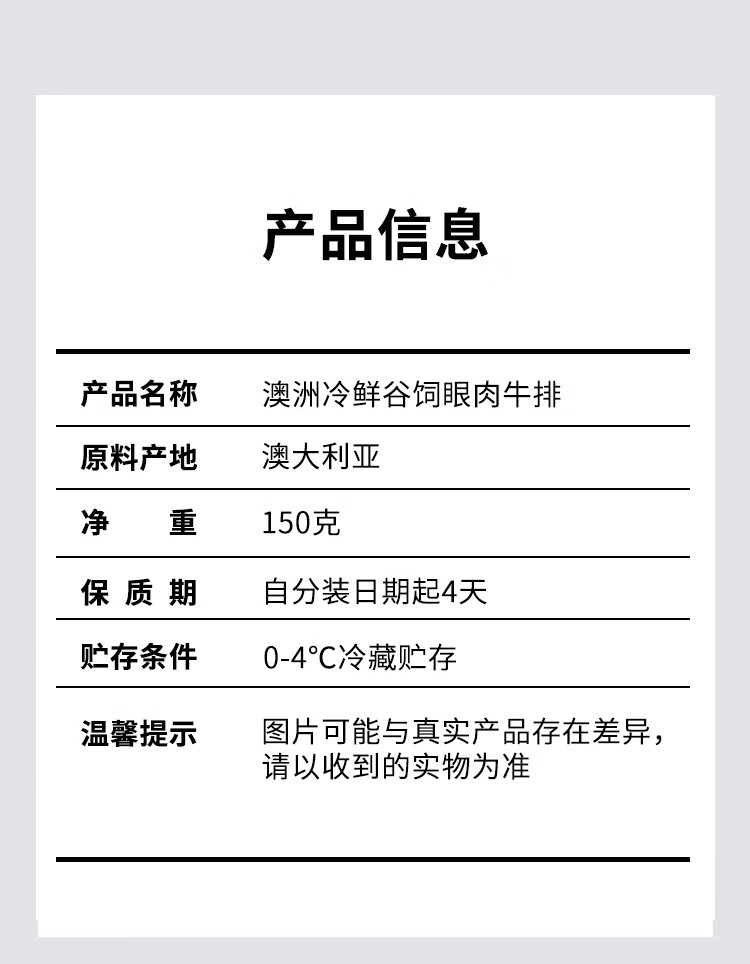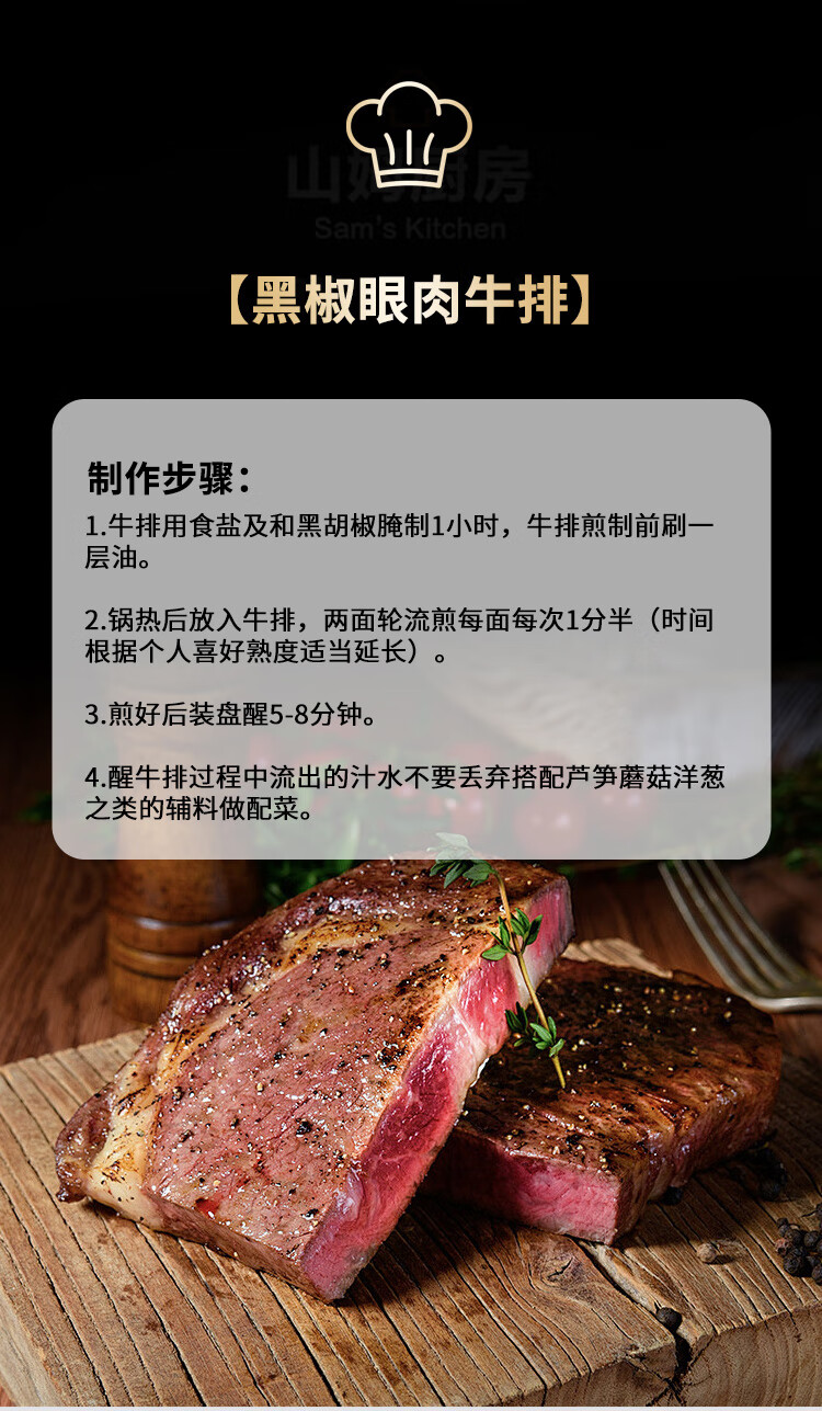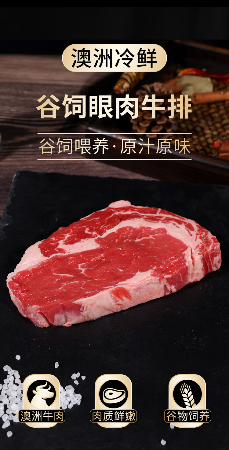 月盛斋 澳洲冷鲜谷饲100天眼肉牛排150g 煎烤食材