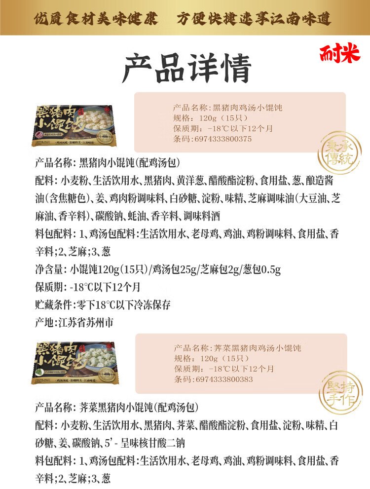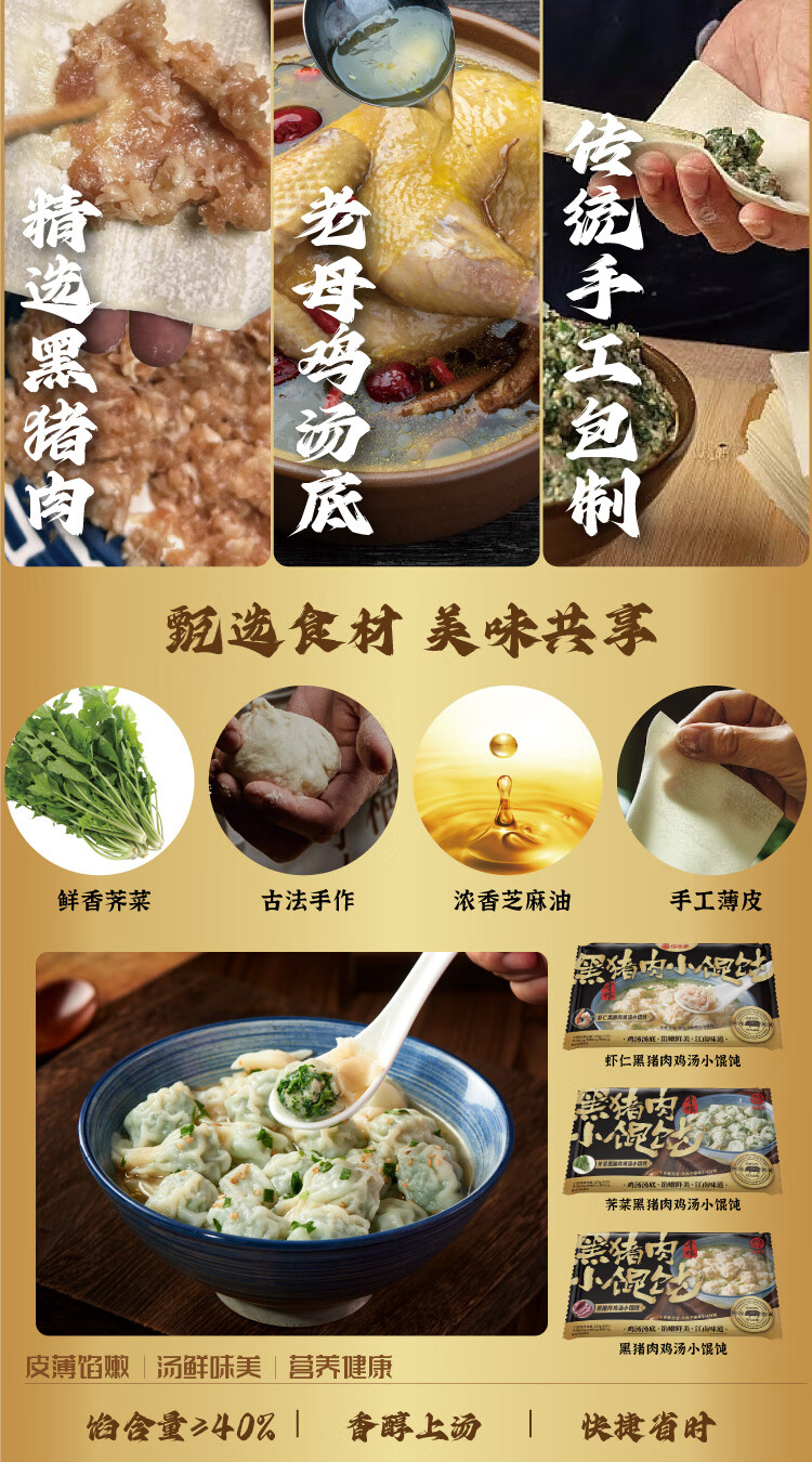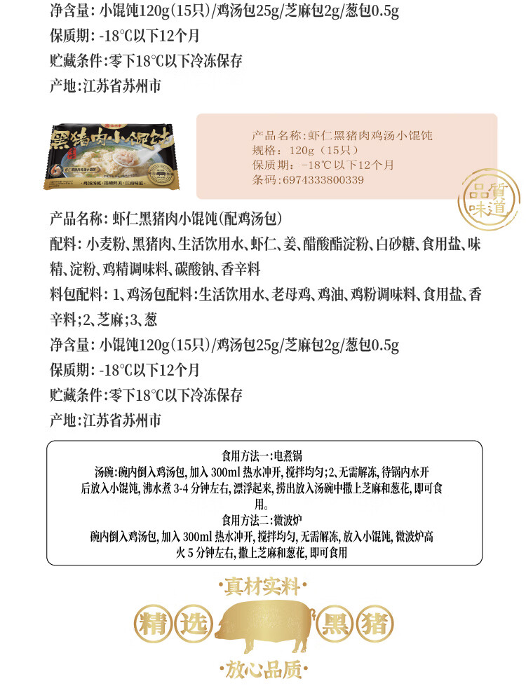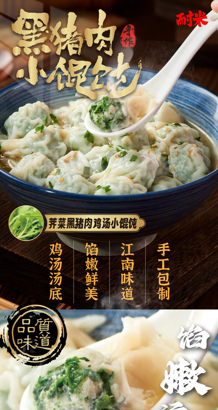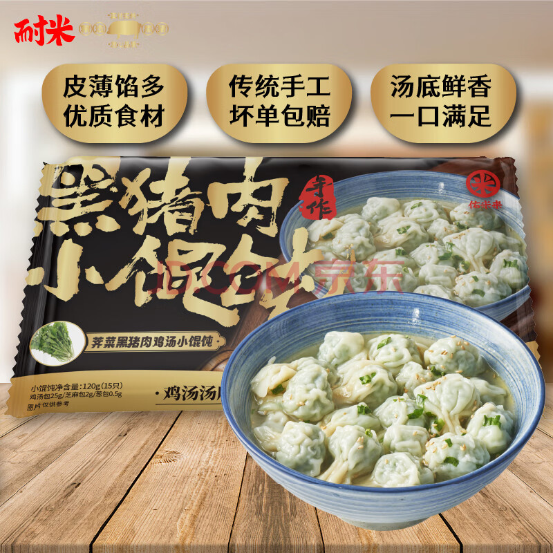耐米黑猪肉馄饨1袋15只120g早餐夜宵 云吞 荠菜黑猪肉3袋