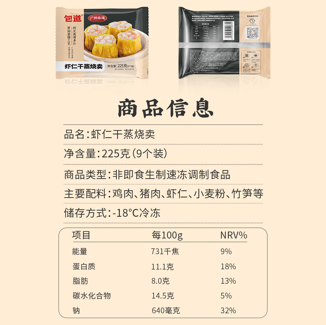 包道广式点心 虾仁干蒸烧麦225g 9只装广东早茶 茶楼早点速冻早餐食品