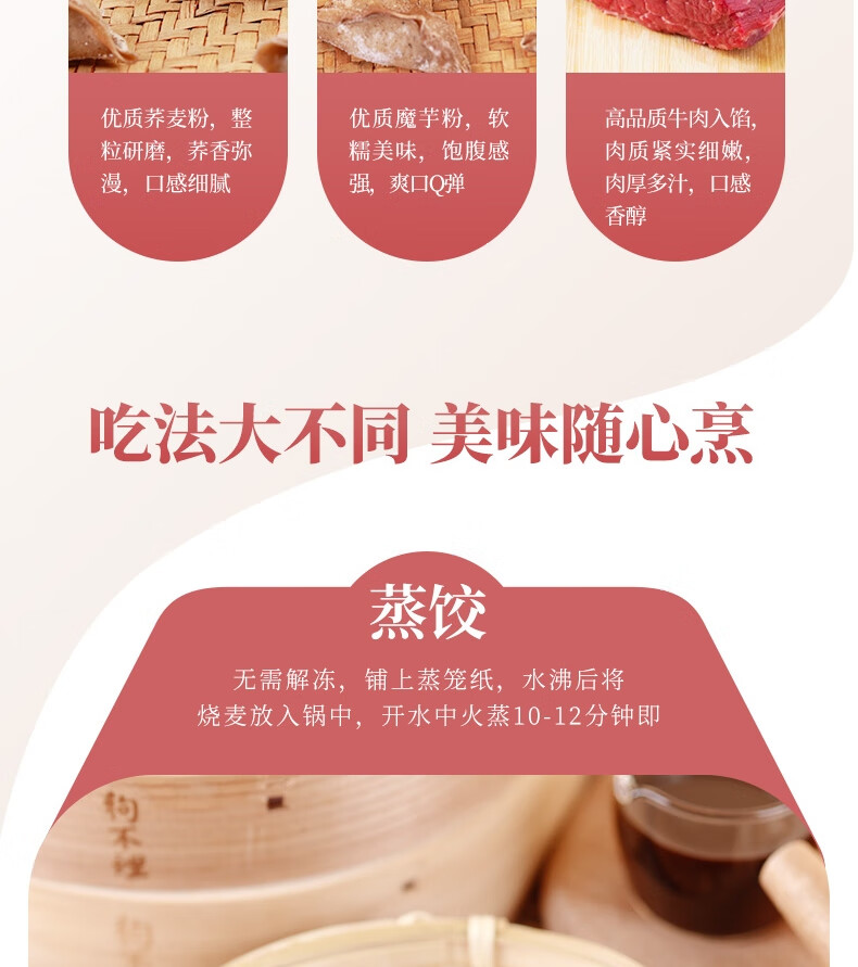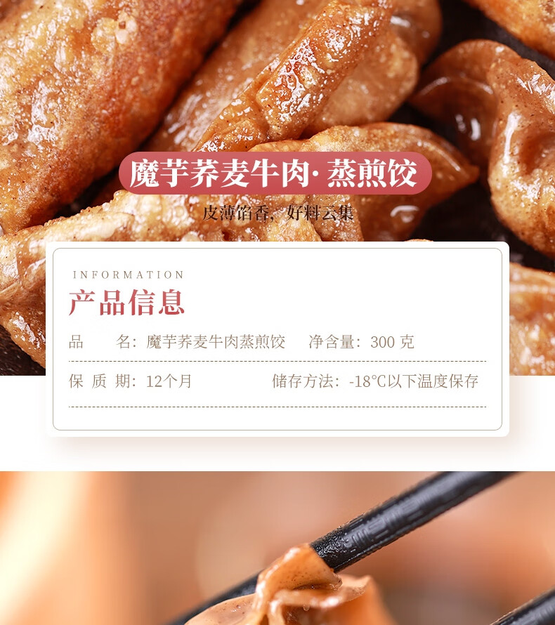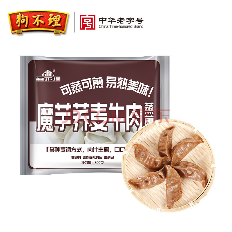 狗不理魔芋牛肉荞麦蒸煎饺300g(约15只) 低脂 轻食速冻饺子 早餐食材