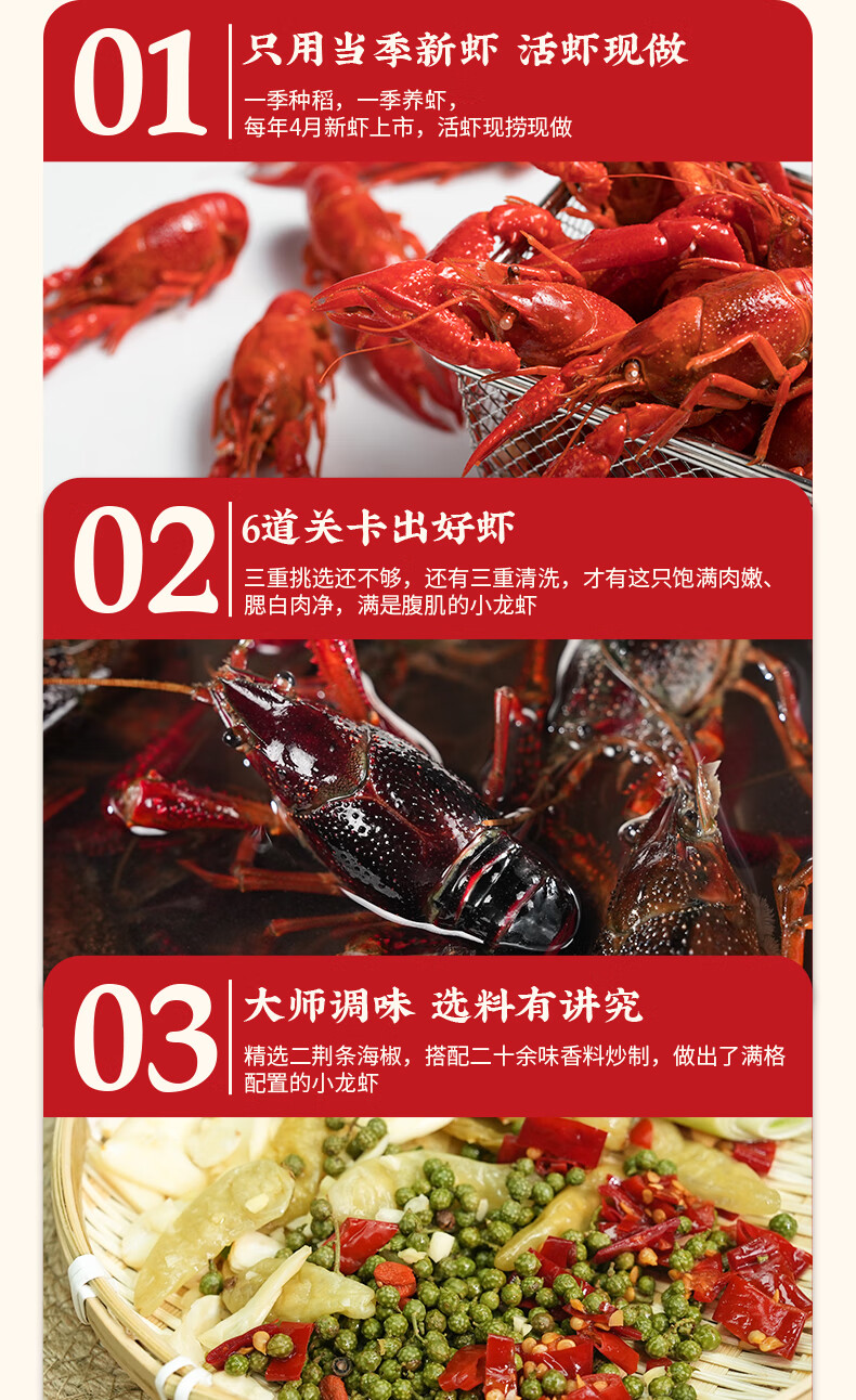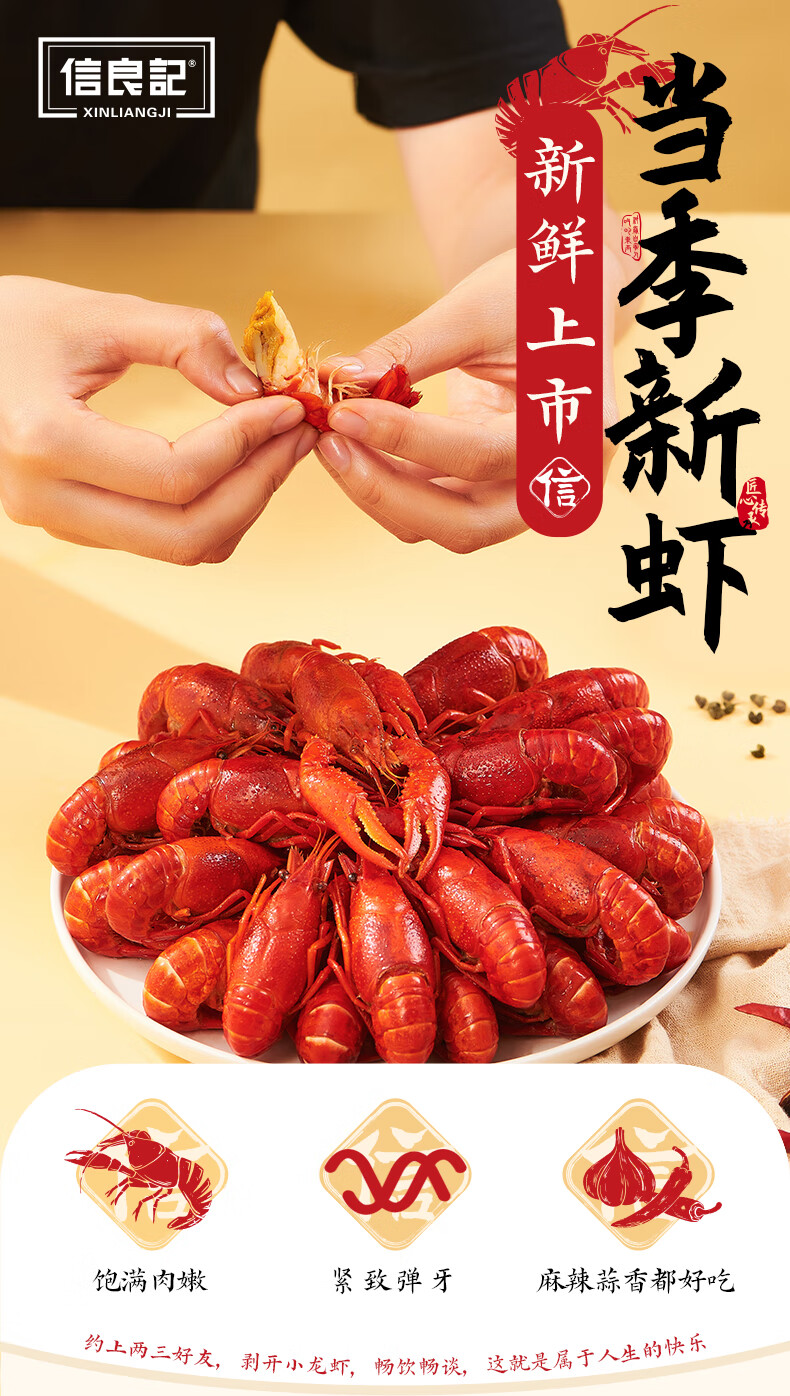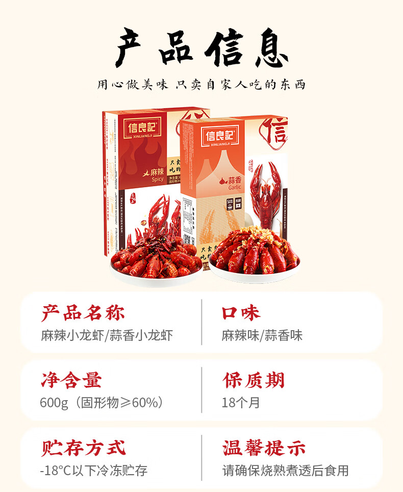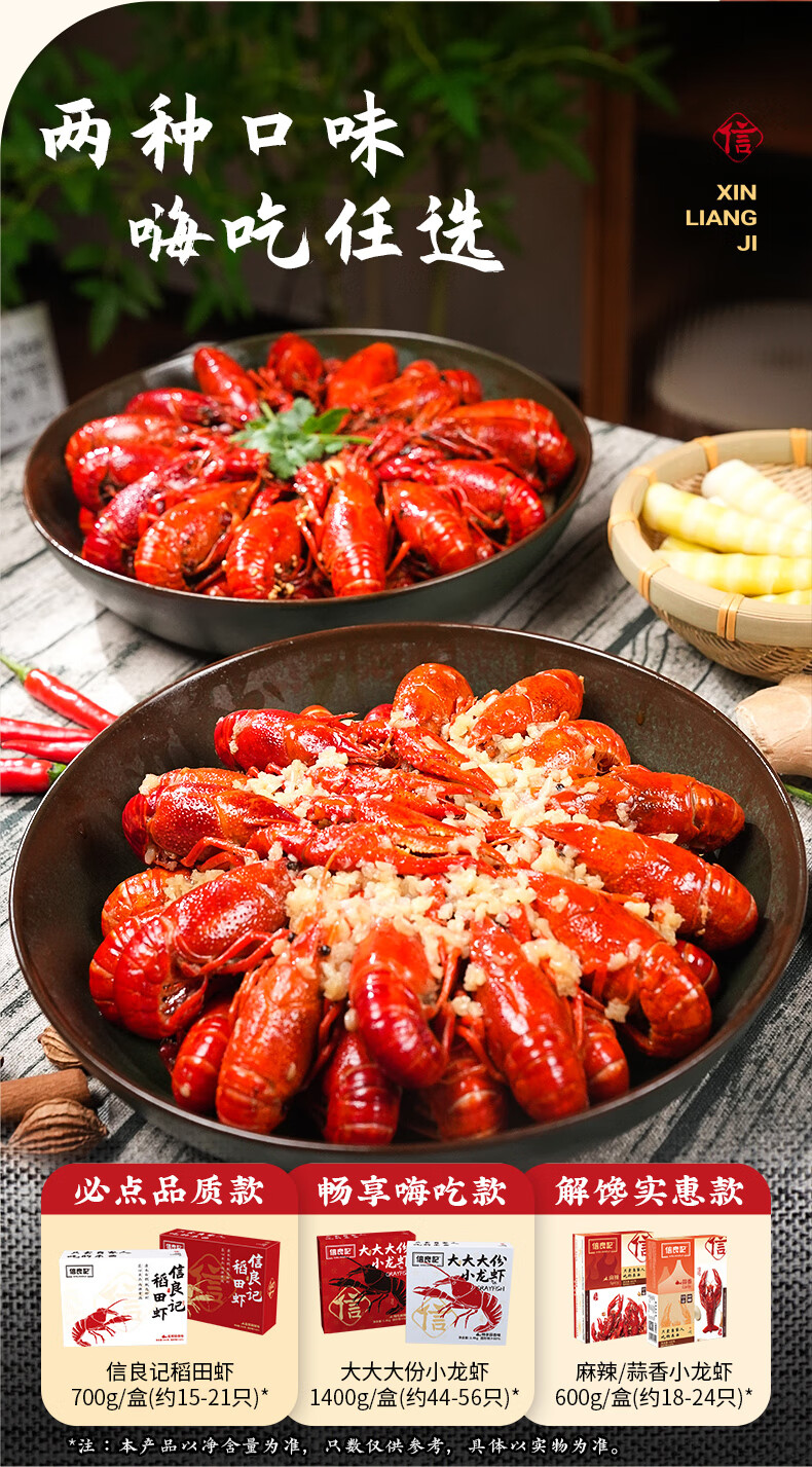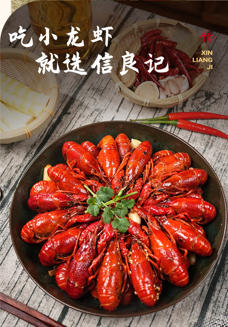 信良记蒜香小龙虾600g*3盒中号4-6钱预制净虾600g/盒加热即食