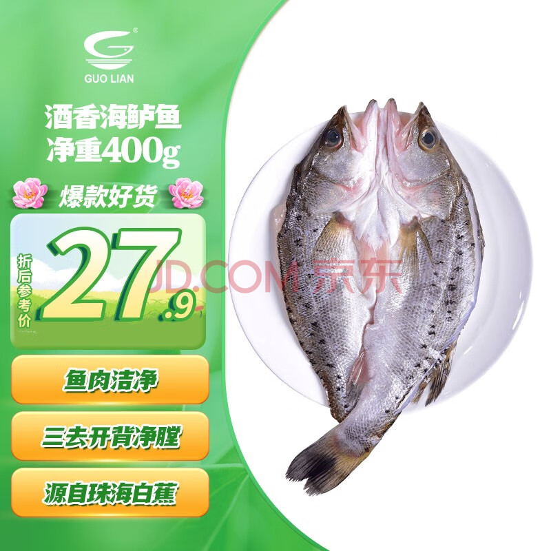 GUO LIAN国联水产 酒香海鲈鱼净重400g 三去开背 冰冻生鲜
