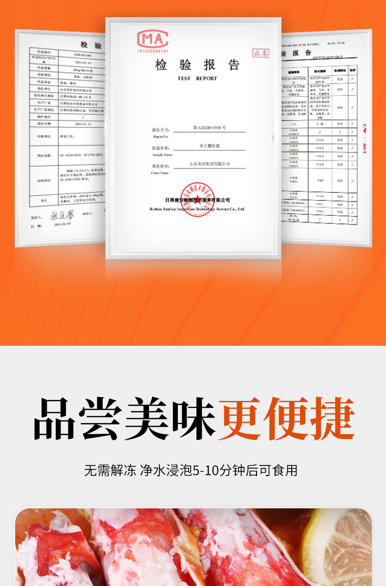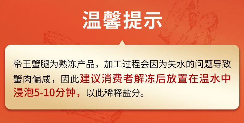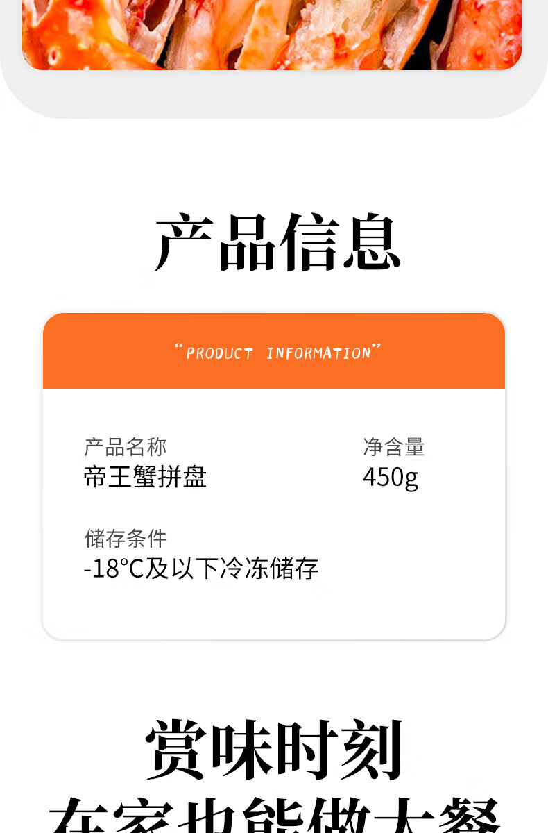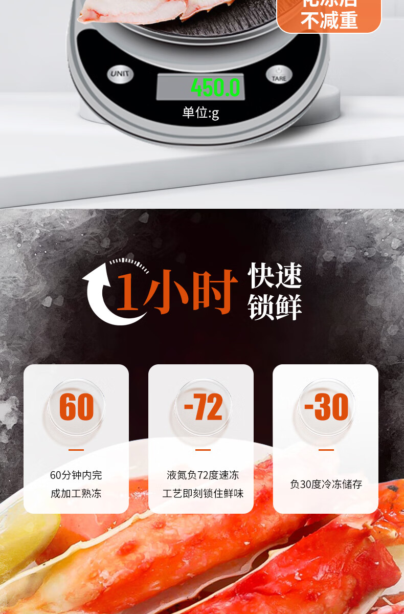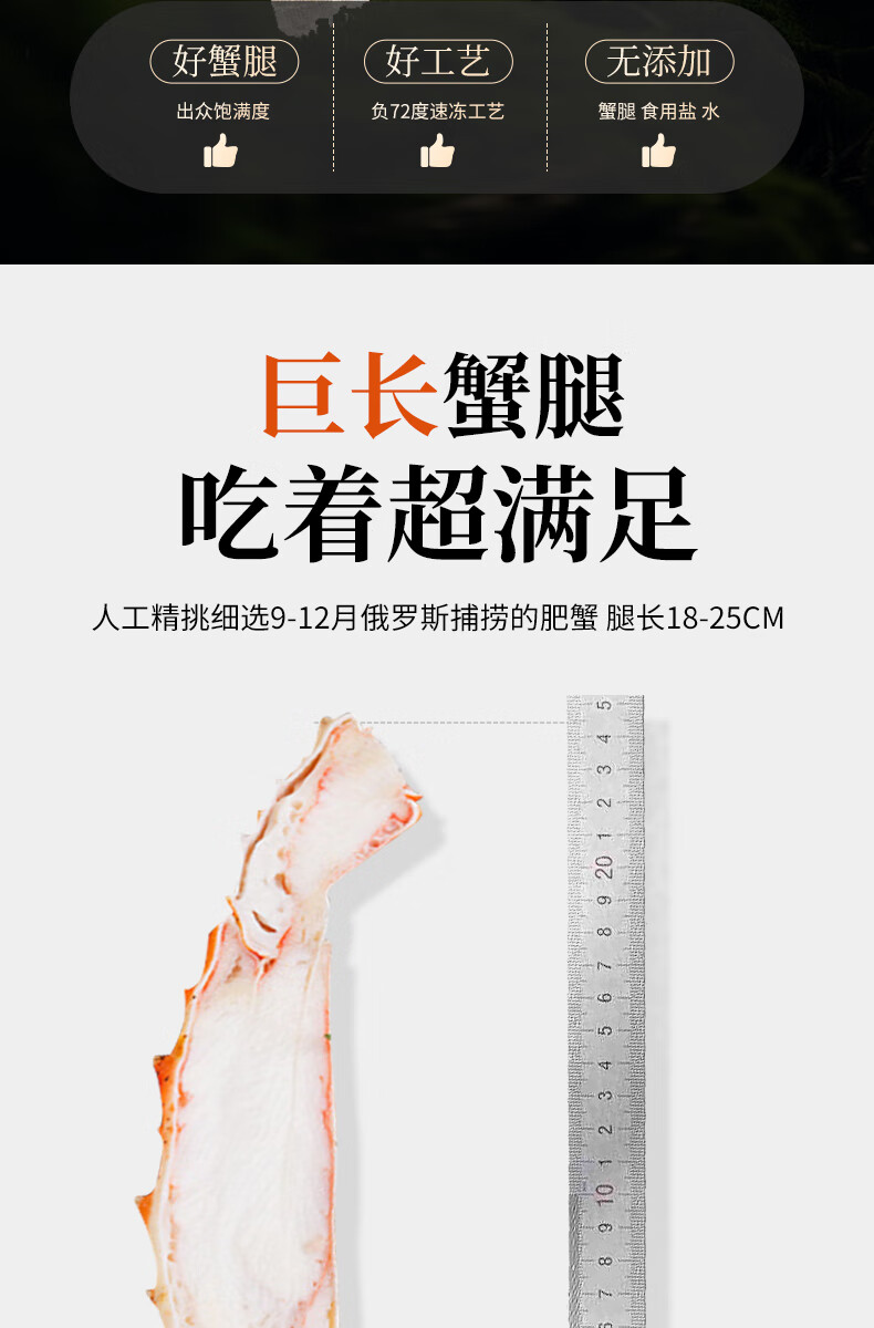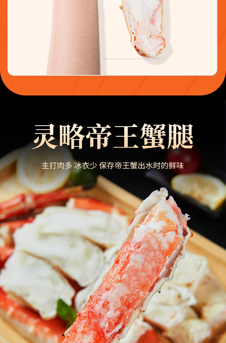 灵略俄罗斯帝王蟹蟹腿450g熟冻帝王蟹腿 蟹类生鲜大螃蟹腿送礼聚会海鲜水产