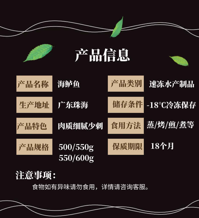 恒益三去开背海鲈鱼 500-550g 新鲜急冻海鲜水产 去鳞去鳃去内脏