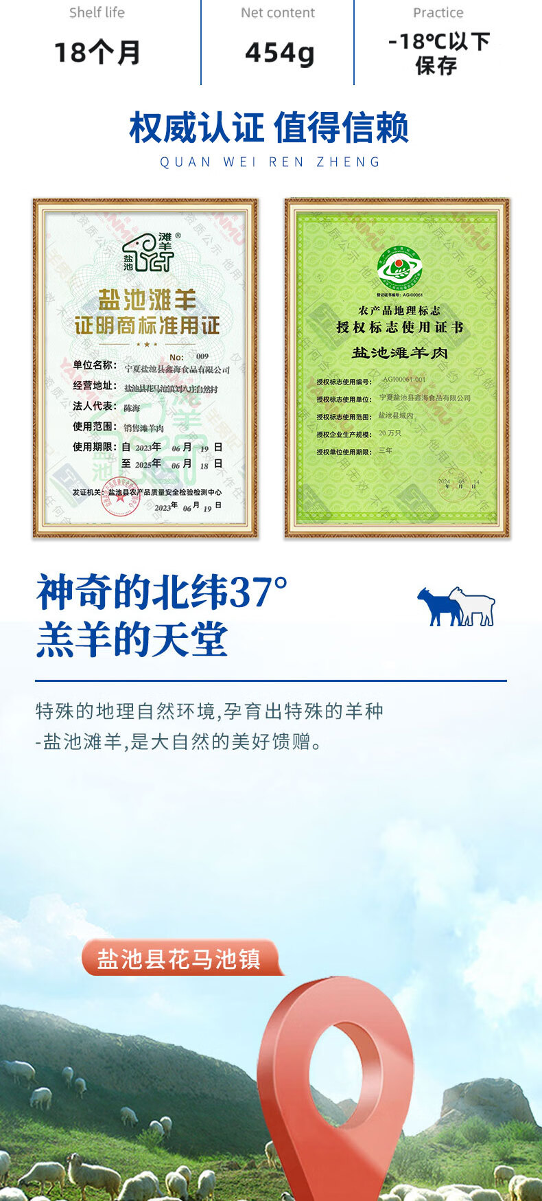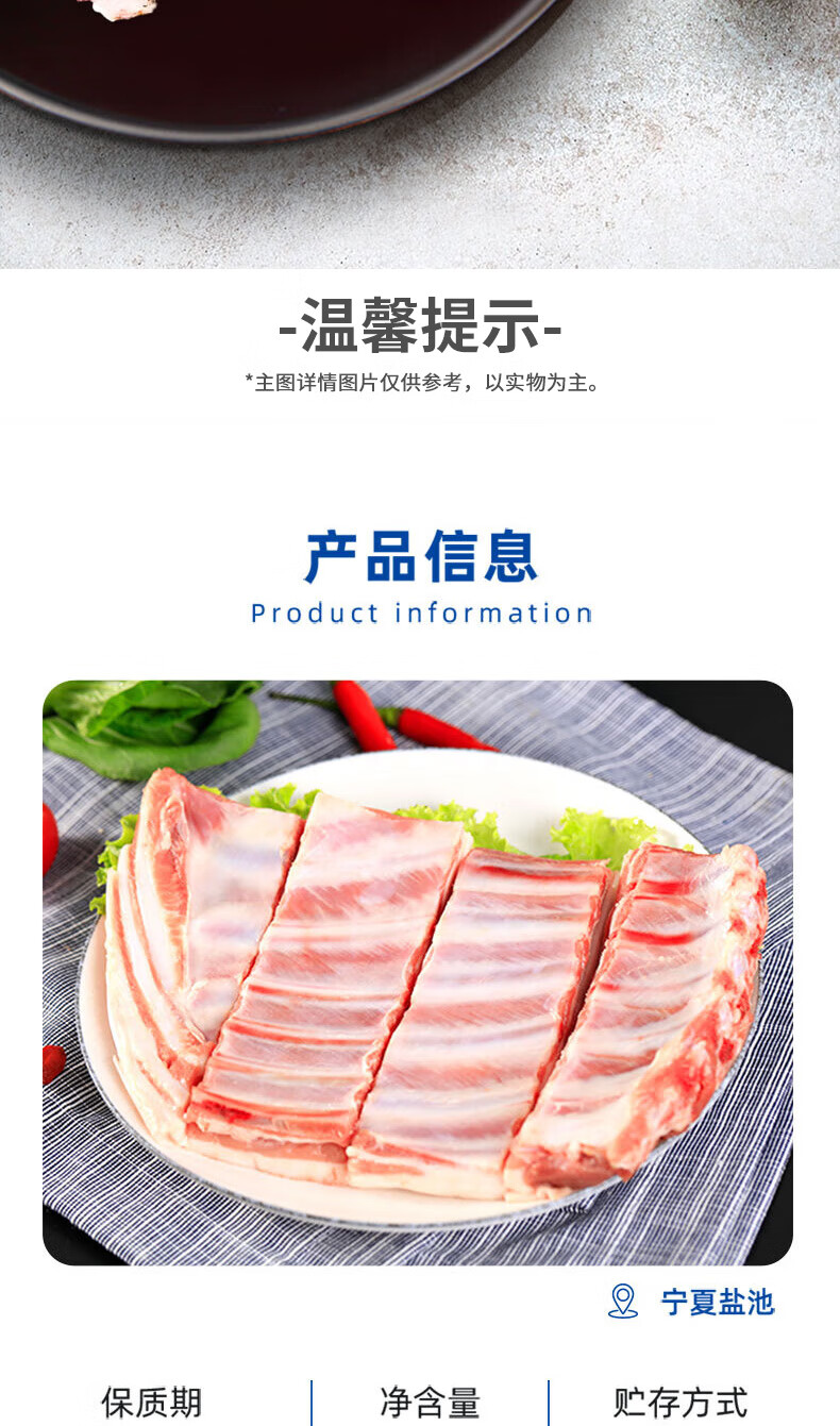 宁鑫 宁夏盐池滩羊肉 原切羊小排454g 地理标志产品 清真食品