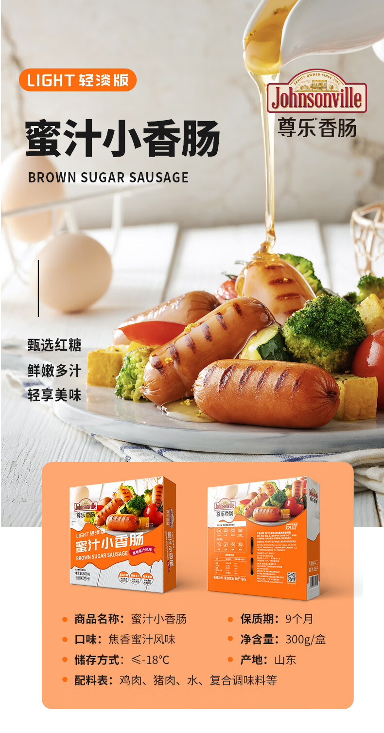 尊乐焦香蜜汁香肠300g Light清淡版爆汁10根烤肠火腿肠热狗肠纯肉肠