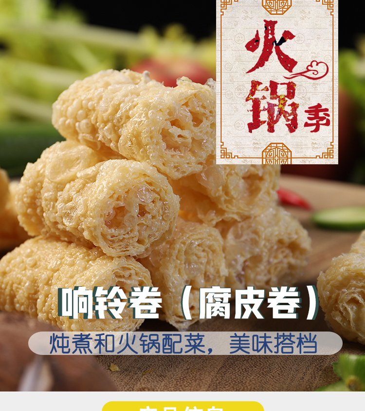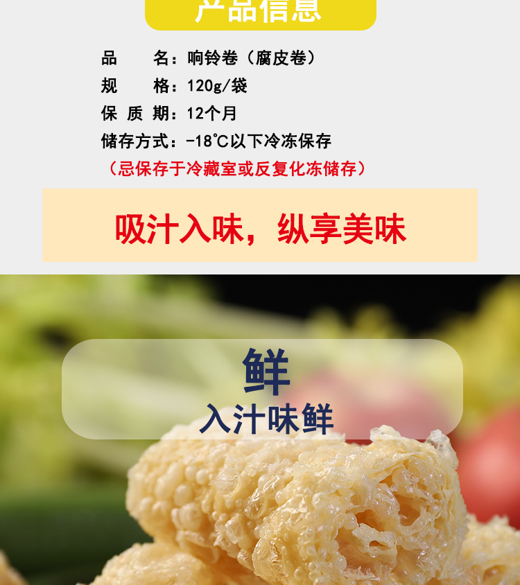 金良玉地香豆豆速冻黄金豆卷120g油炸豆腐皮卷 火锅响铃卷 年货