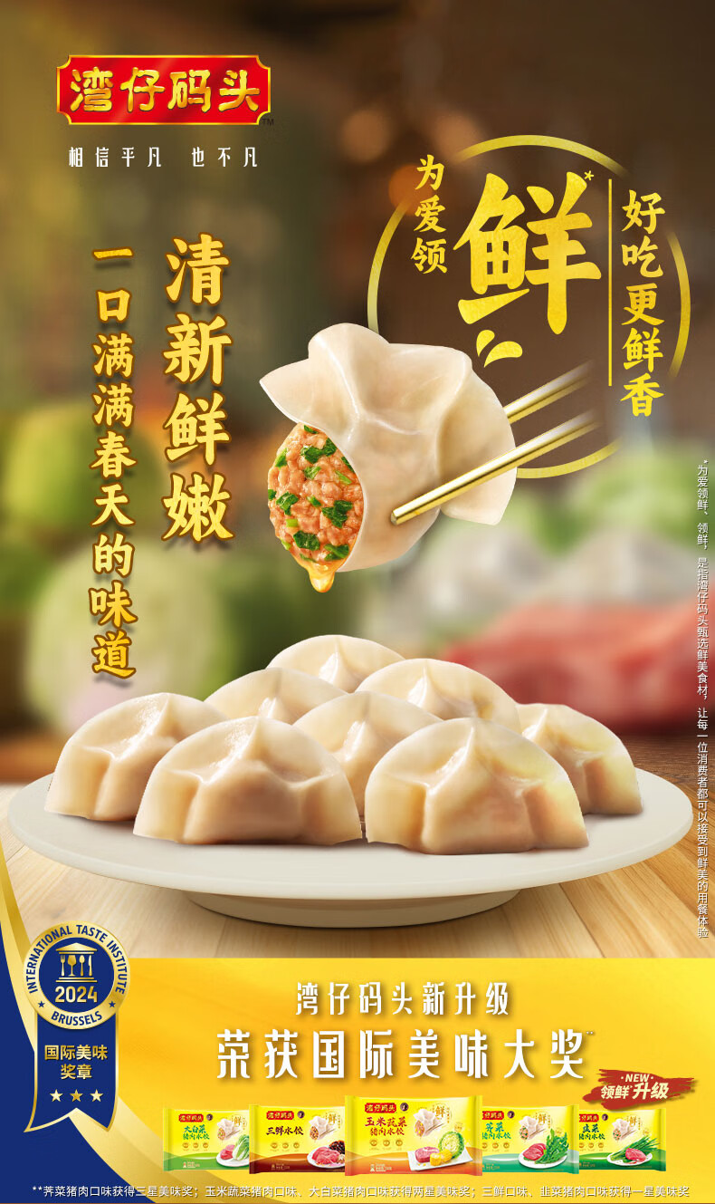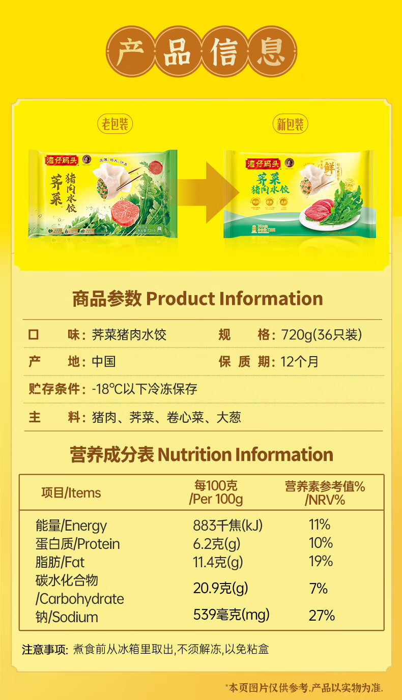 湾仔码头荠菜猪肉水饺720g36只早餐食品速食半成品面点速冻饺子