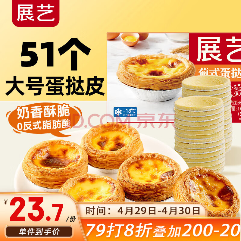 展艺 葡式蛋挞皮 51个装 1020g 儿童蛋挞 0反式脂肪酸 烘焙半成品