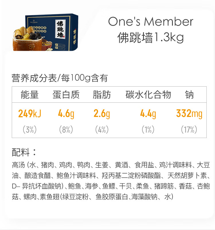 1号会员店(One's Member)福州正宗佛跳墙鲍鱼海参预制菜1.3kg盒装