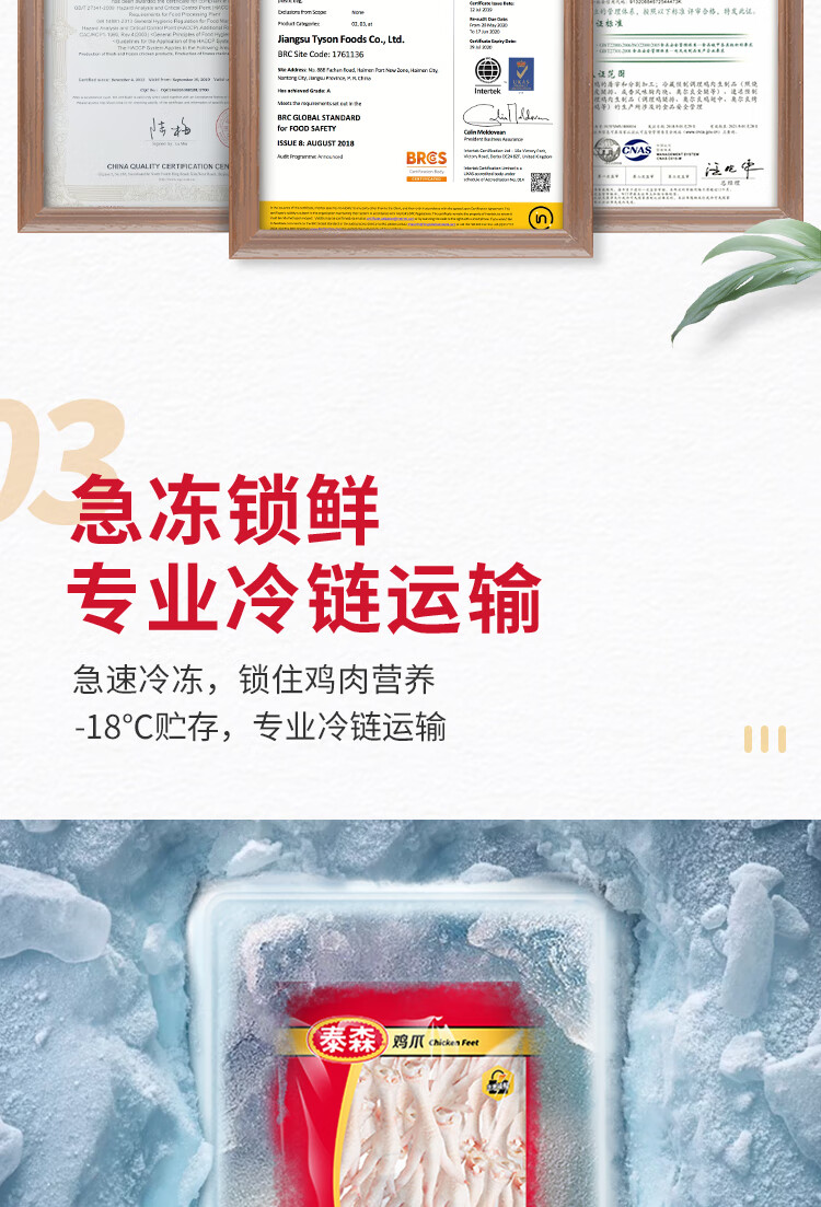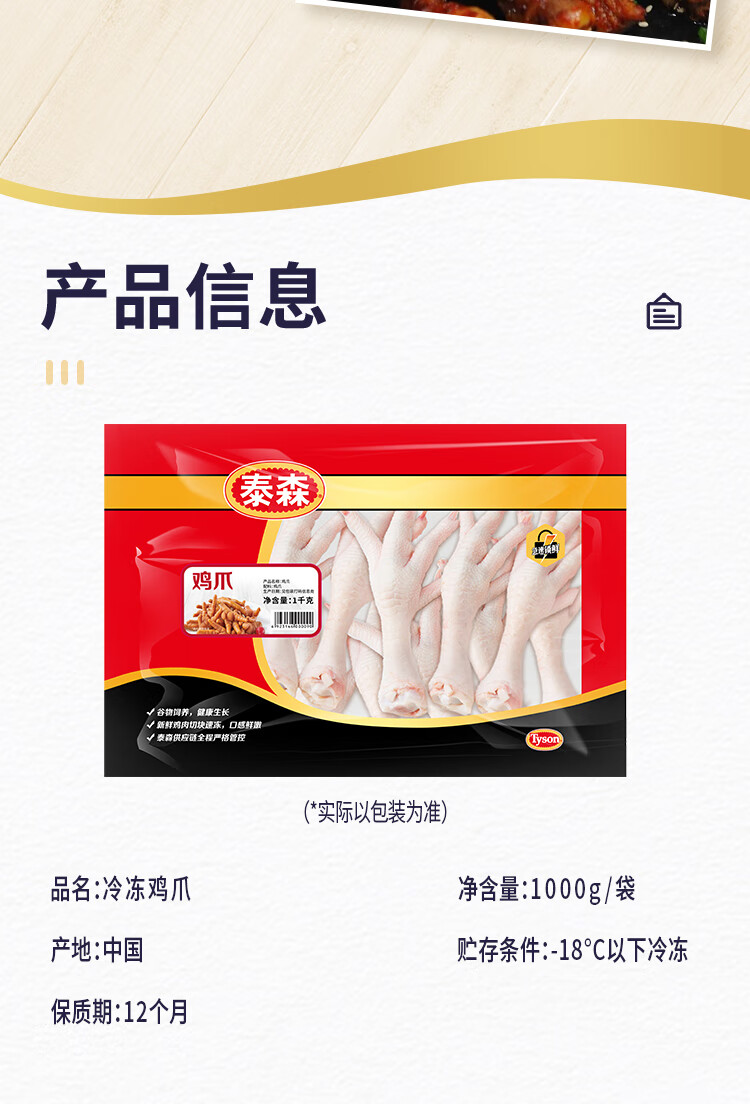 泰森(Tyson)鸡爪 2斤/袋 冷冻 烧烤 糟卤凤爪 生鲜食材