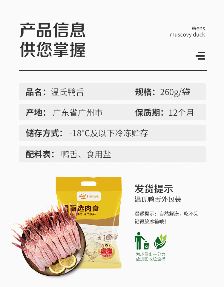 温氏鸭舌260g 冷冻精切鸭舌 生鲜鸭舌鸭肉卤味火锅烧烤食材