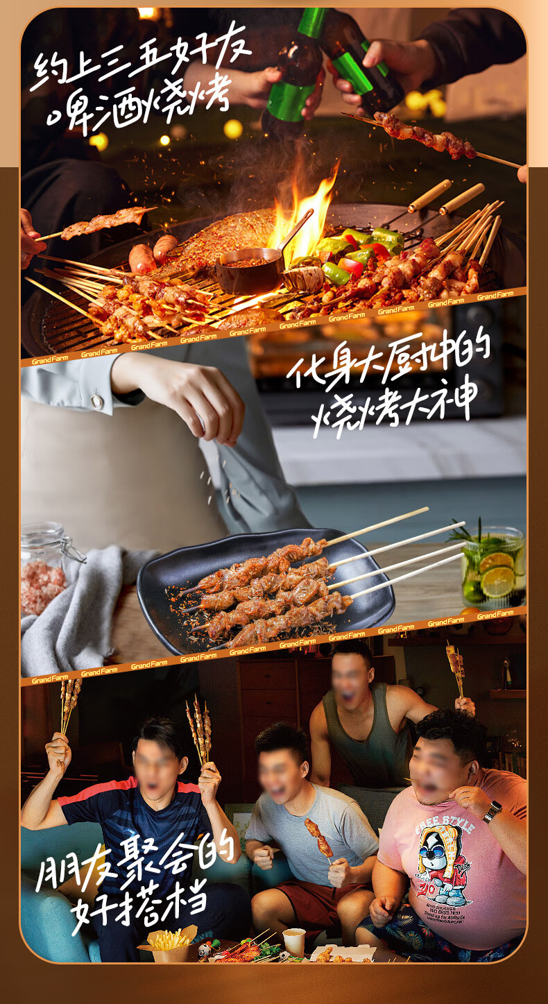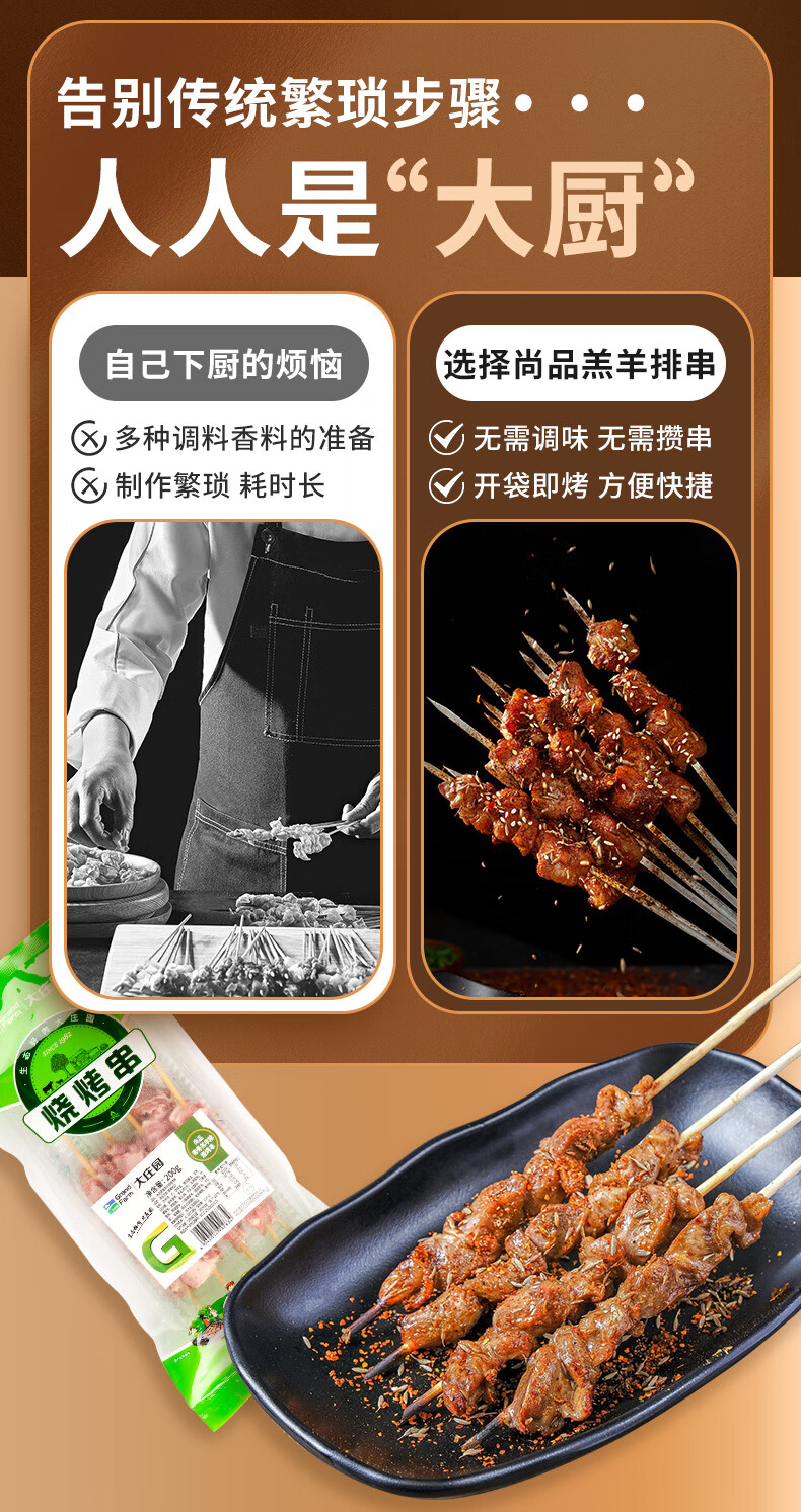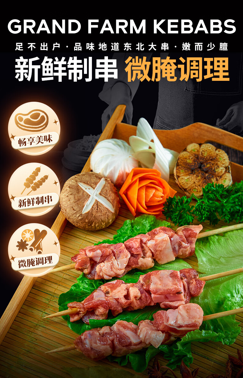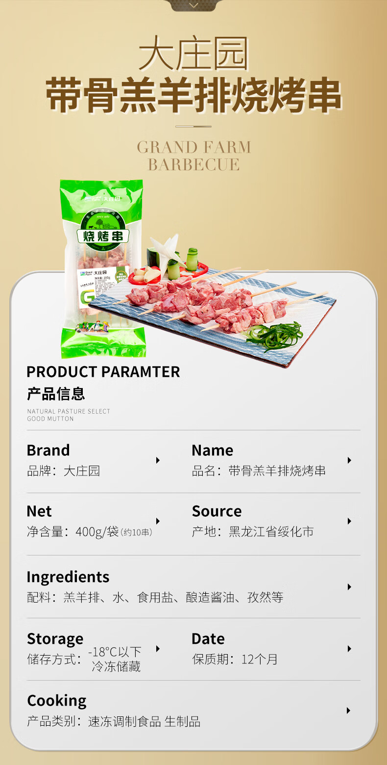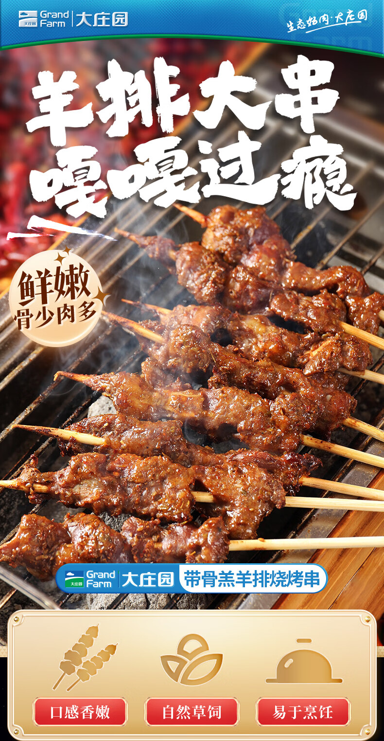 大庄园【烧烤季】带骨羔羊排羊肉串400g/袋 (约10串)东北烧烤微调非真空