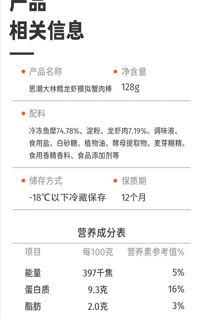 思潮大林 鳕龙虾蟹肉棒 手撕蟹柳韩国进口早餐小吃休闲零食开袋即食 128g