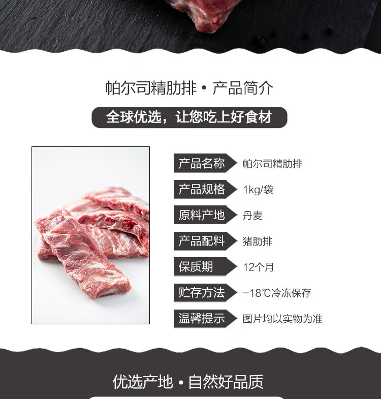 帕尔司精肋排 1kg 冷冻猪排骨猪肋骨猪肋条 猪肉生鲜