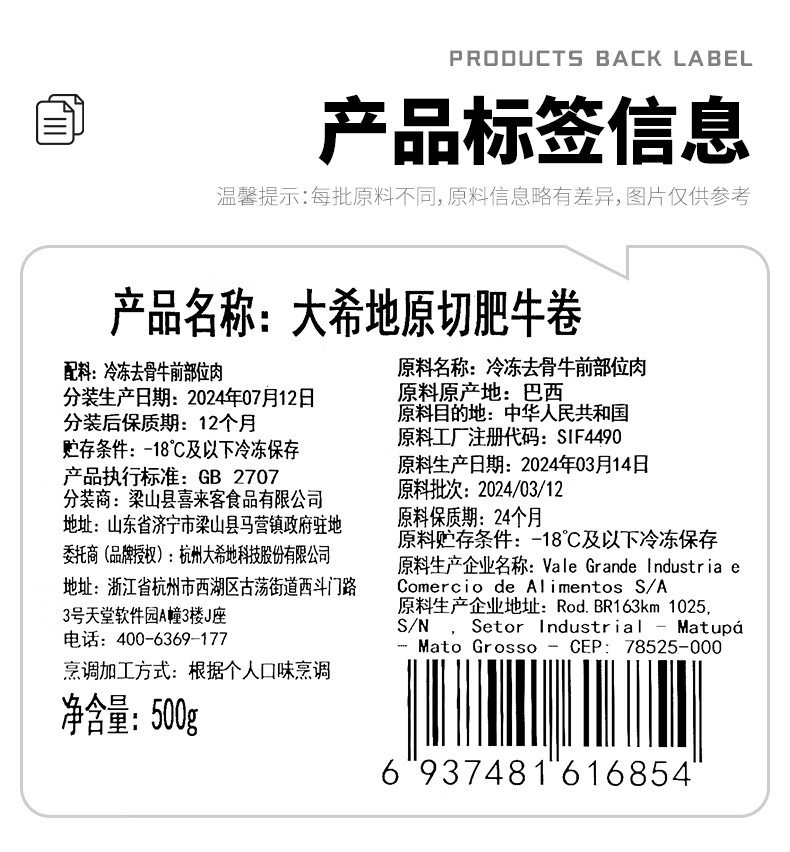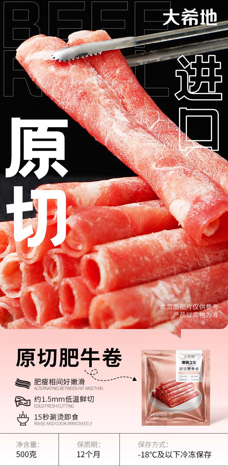 大希地原切肥牛卷500g 冷冻鲜嫩牛肉卷 国产牛肉片 火锅食材生鲜