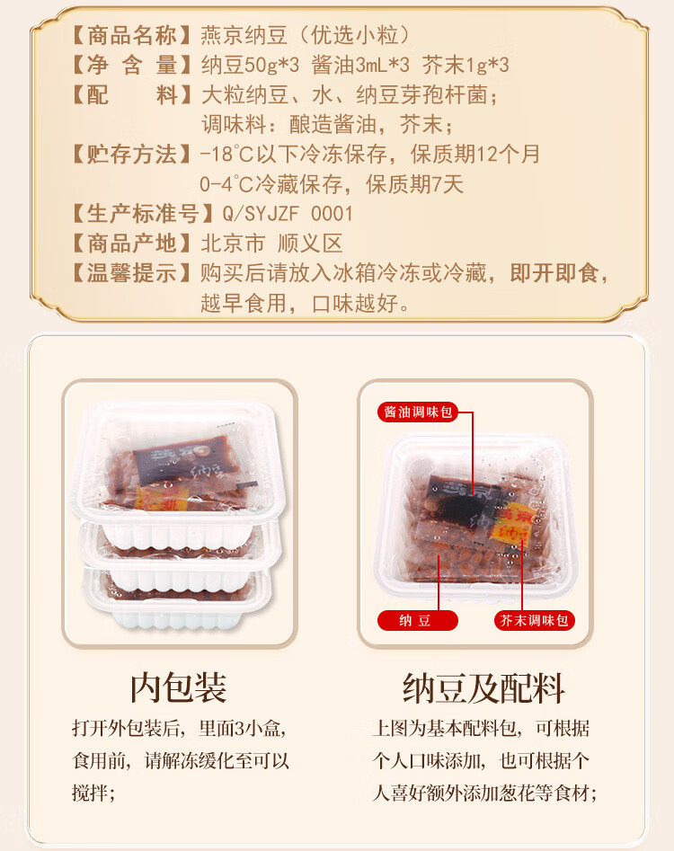 燕京优选小粒纳豆 50g*3盒*2(6盒 国产纳豆 轻食 北京燕京 尝鲜装)