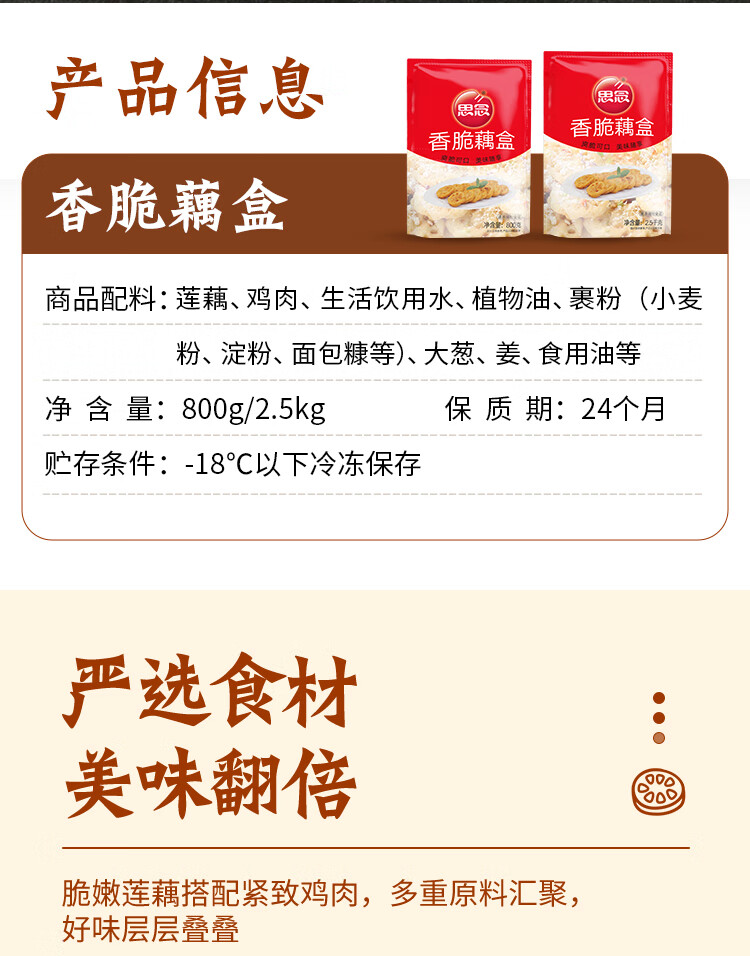思念香脆藕盒800g/袋约20个 预制菜方便菜半成品空气炸锅食材