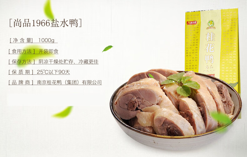 桂花鸭 江苏南京 桂花尚品盐水鸭1000g整只装 源头直发