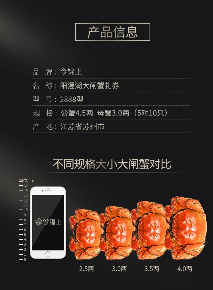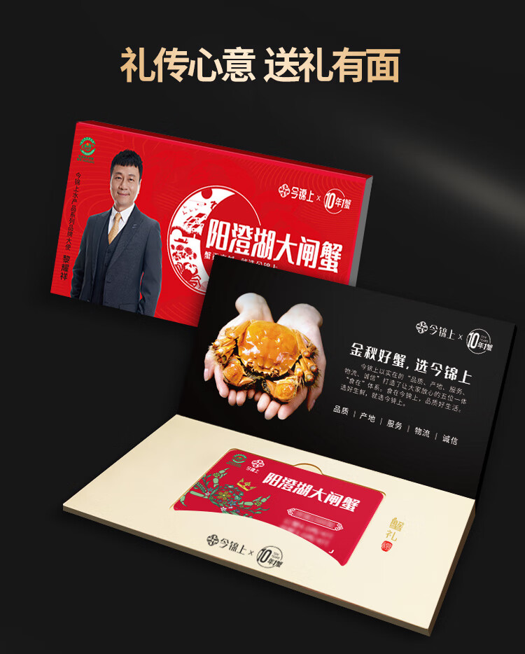 【礼券】今锦上 阳澄湖大闸蟹礼券2888型 公4.5两母3.0两5对10只中秋螃蟹卡礼盒礼品卡