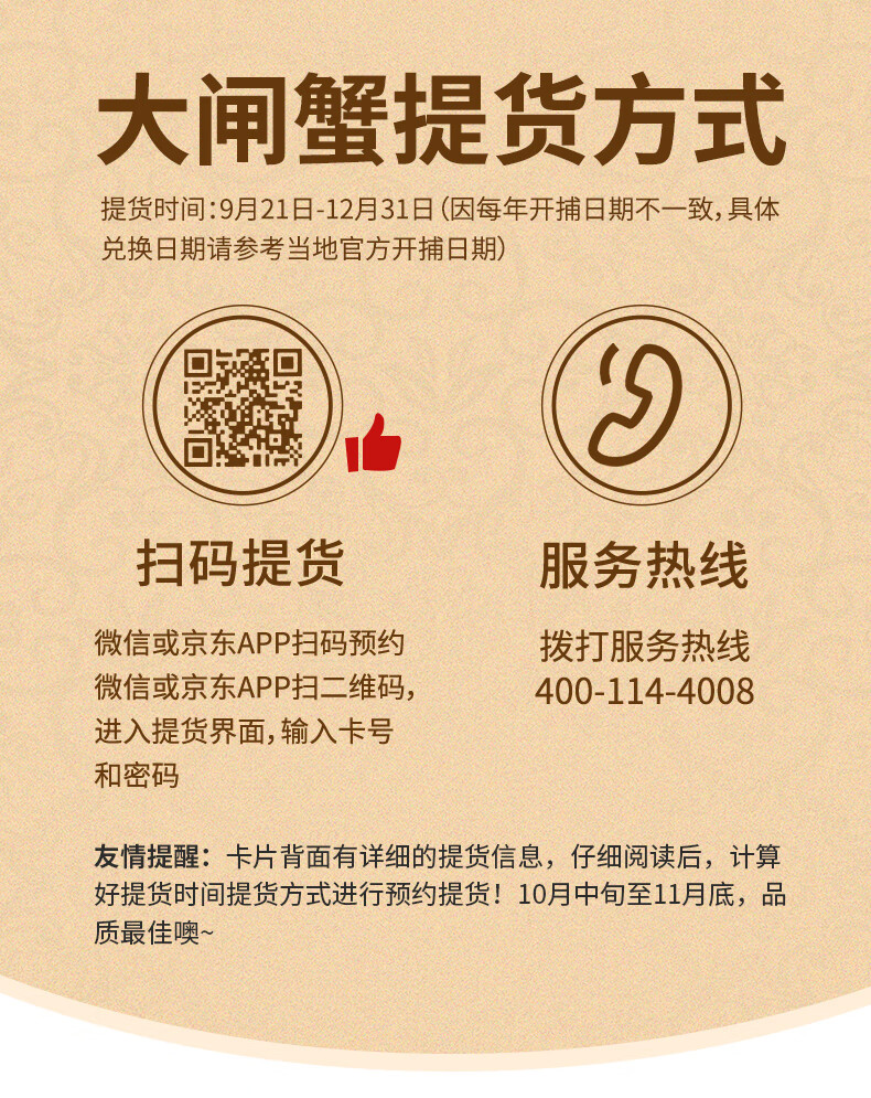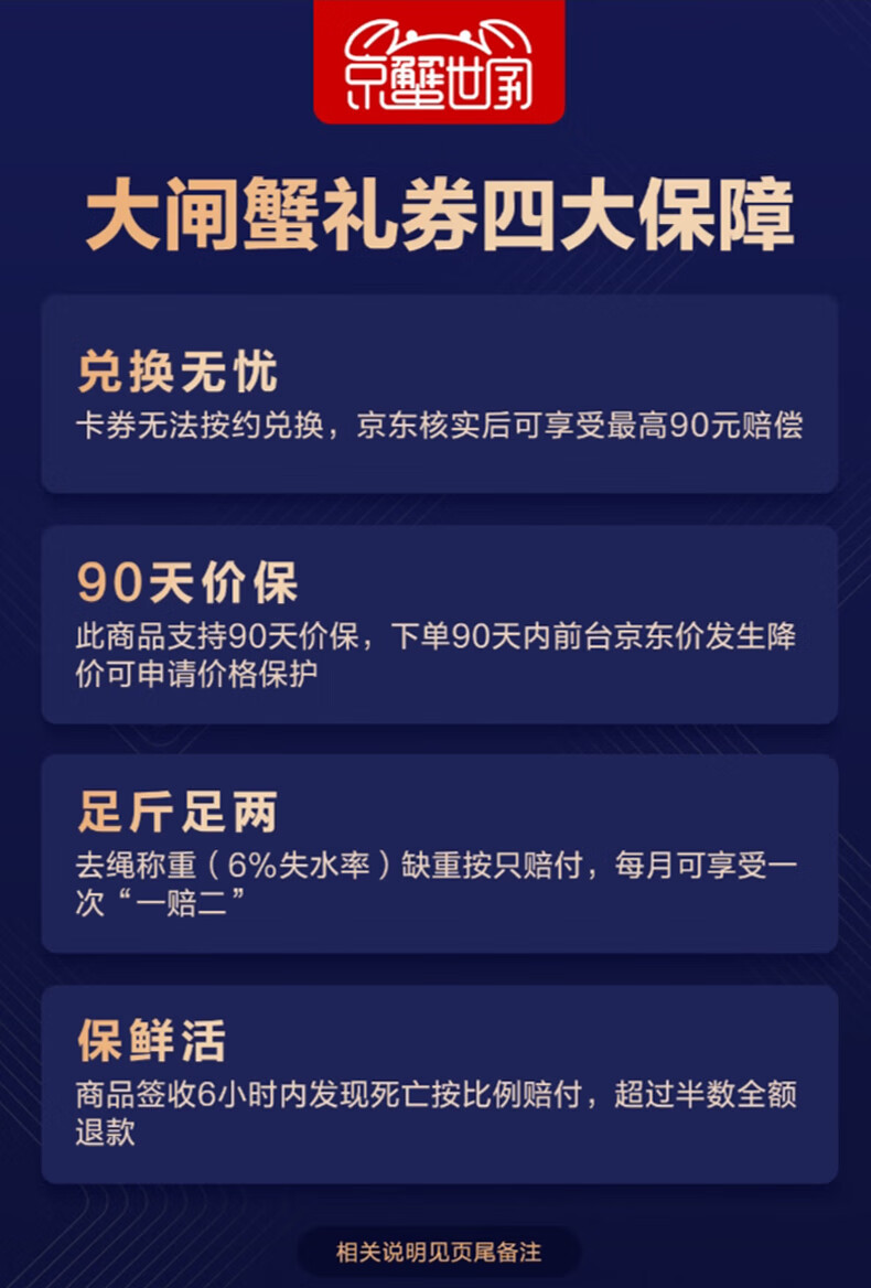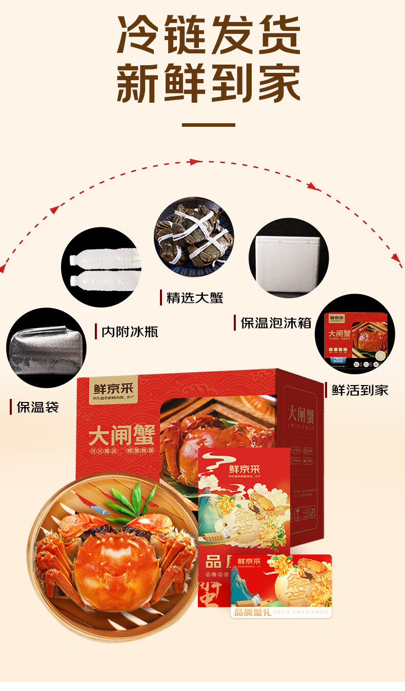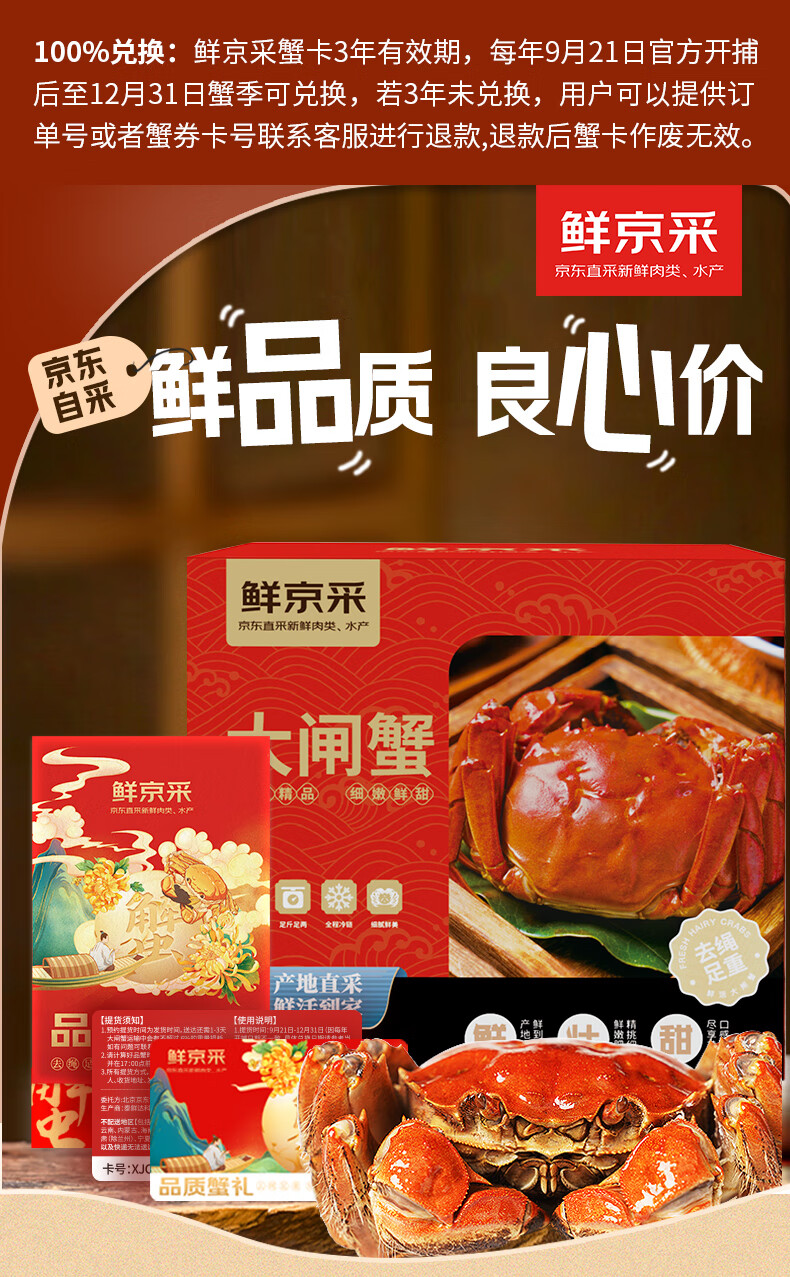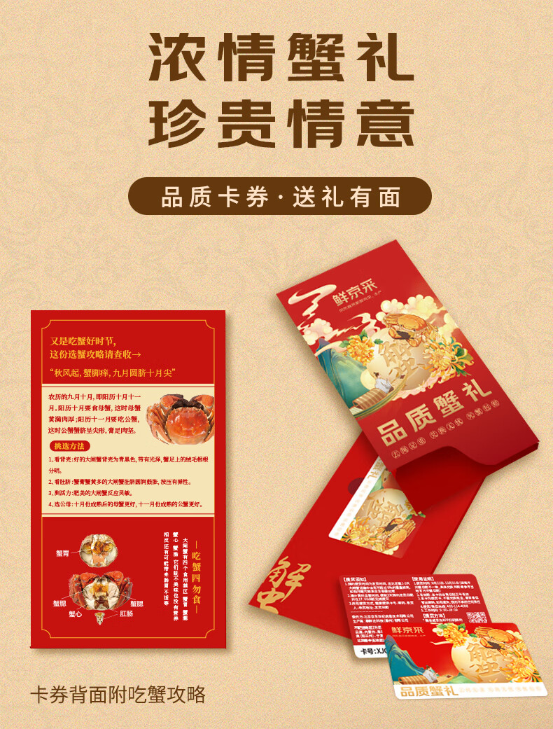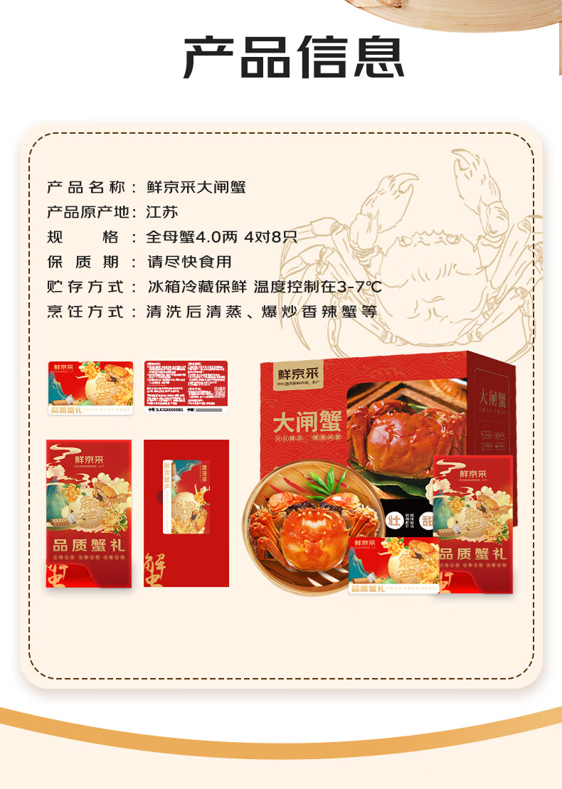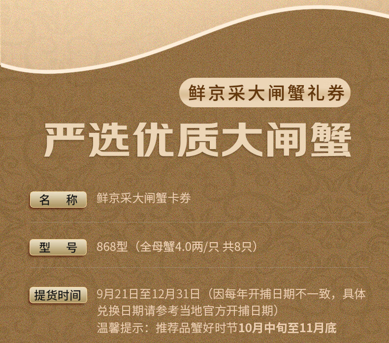 【礼券】鲜京采大闸蟹中秋礼品卡券868型 全母蟹4.0两/只 4对8只螃蟹 京东自有品牌