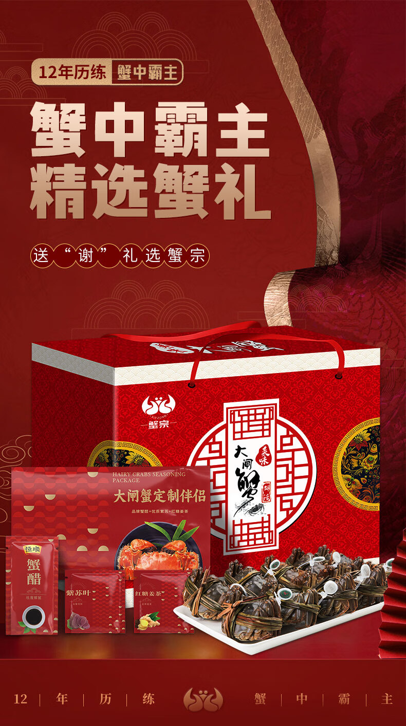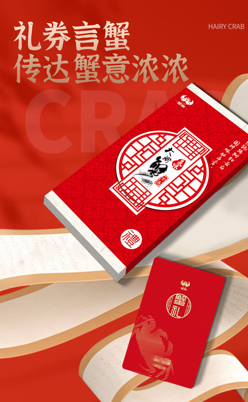 【礼券】蟹宗 大闸蟹礼券8168型 公4.0两母3.0两 4对8只 中秋螃蟹券团购礼盒礼品卡生鲜
