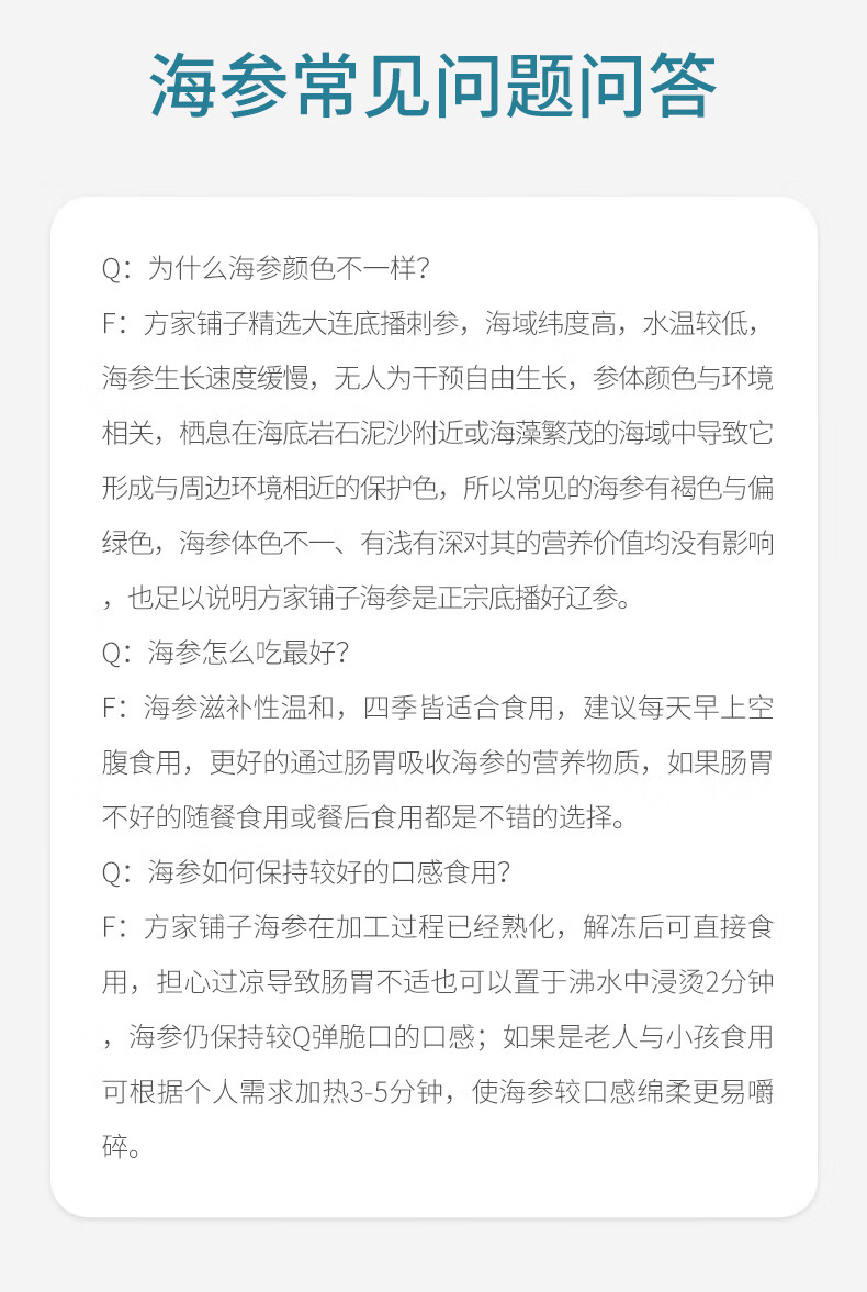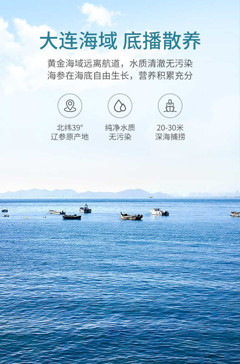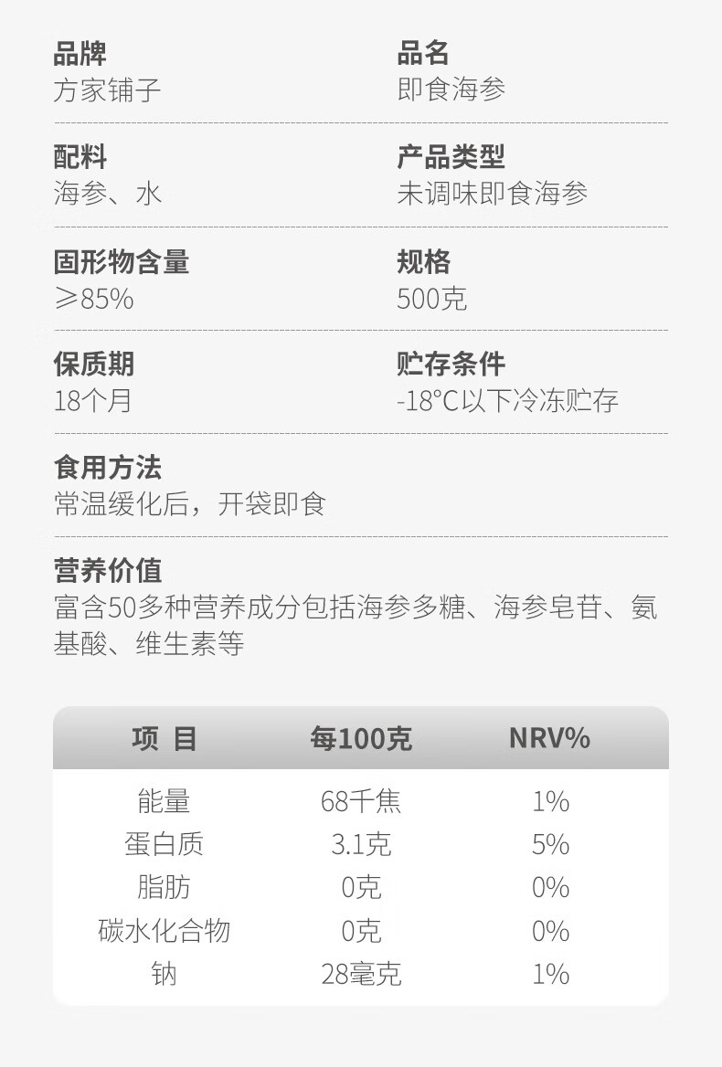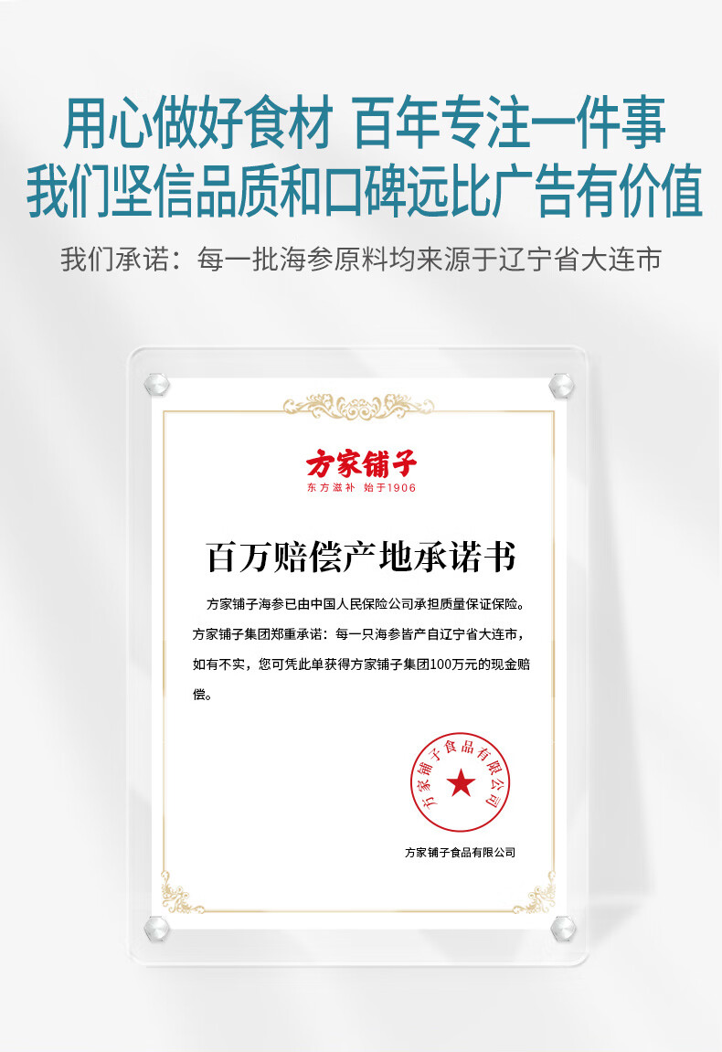 方家铺子中华老字号大连冷冻即食海参2斤18-22只辽刺参固形物85%送礼