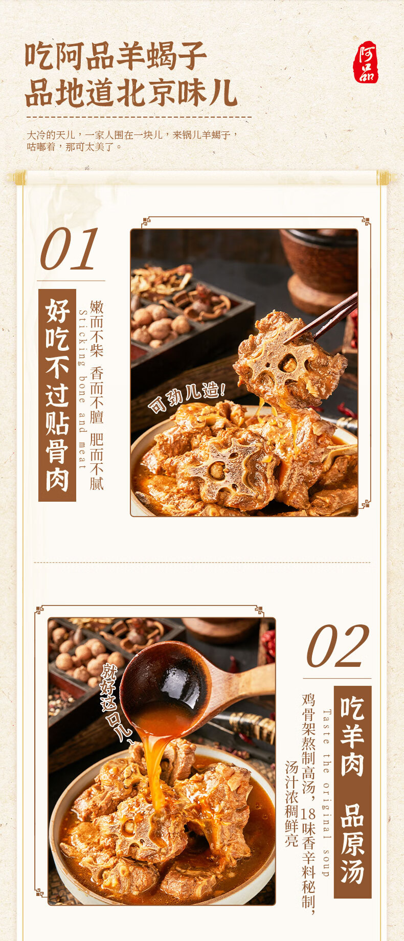 阿品老北京味 羊蝎子火锅懒人菜熟食加热即食 年货节礼盒酱香味2斤/盒