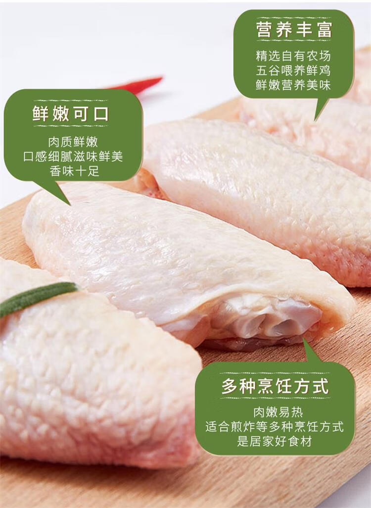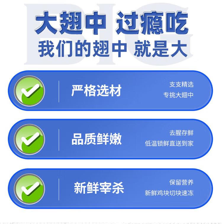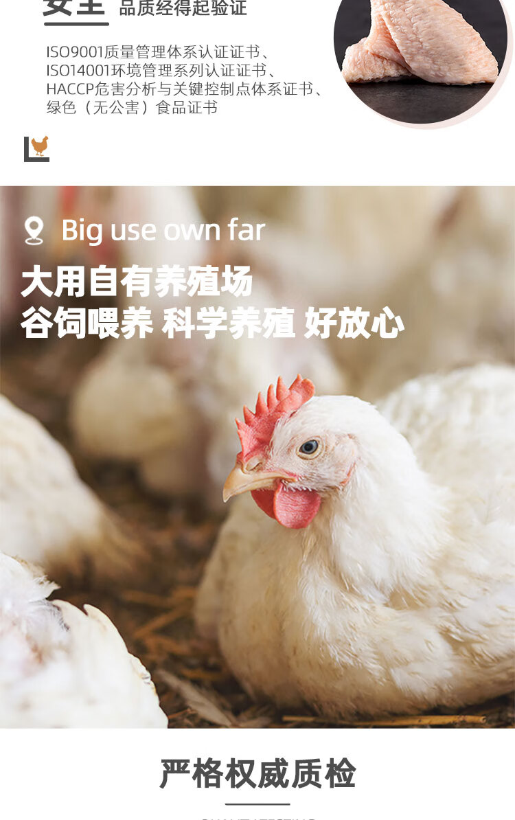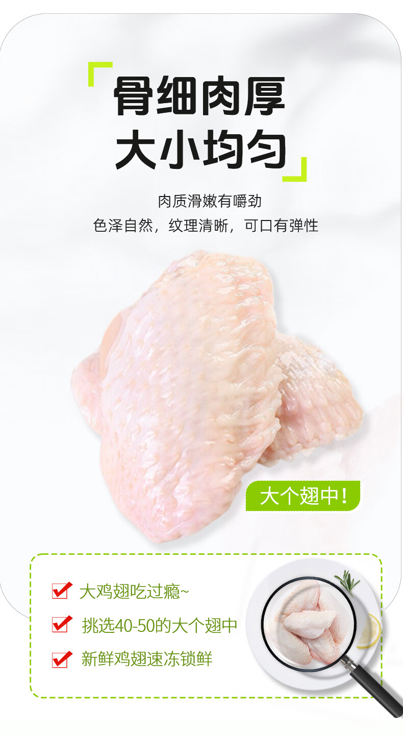 大用单冻鸡翅中 2斤 冷冻鸡翅膀烤鸡翅炸鸡翅鸡肉 卤翅中 清真食品