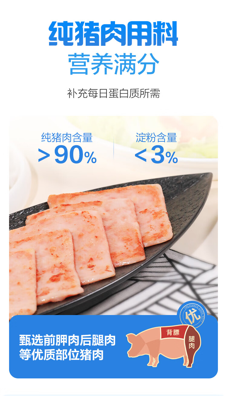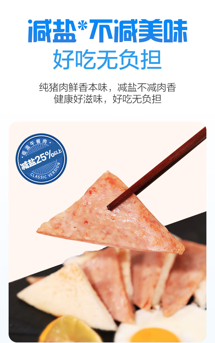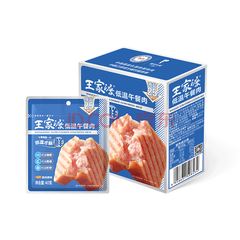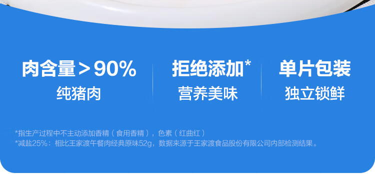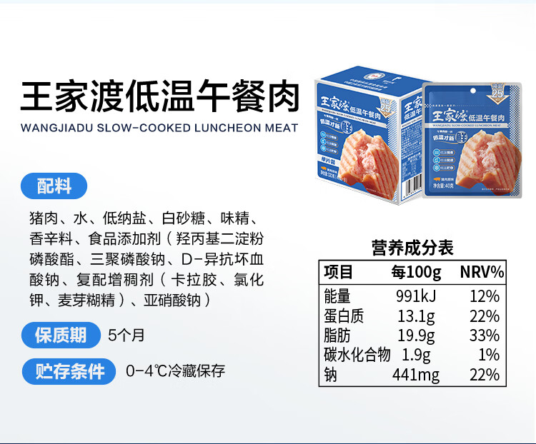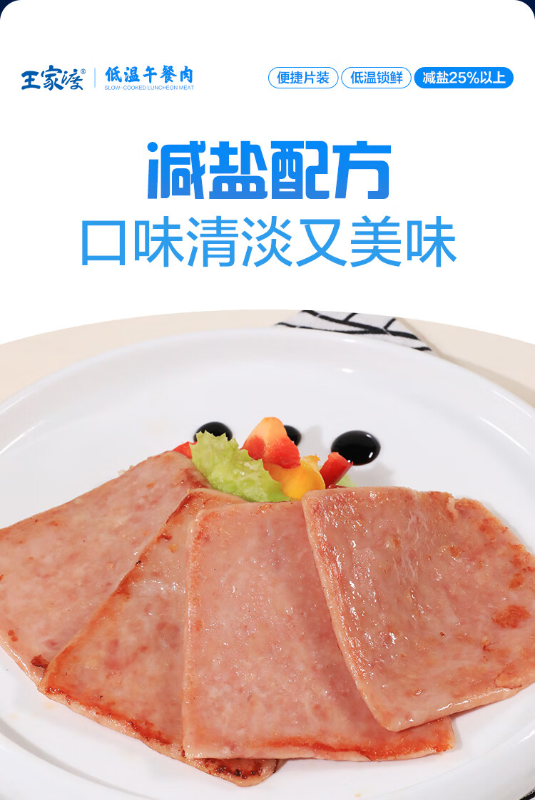 王家渡减盐版 低温午餐肉独立单片装 40g*8片 即食早餐泡面火锅伴侣