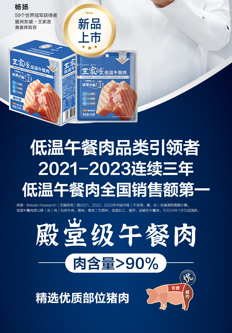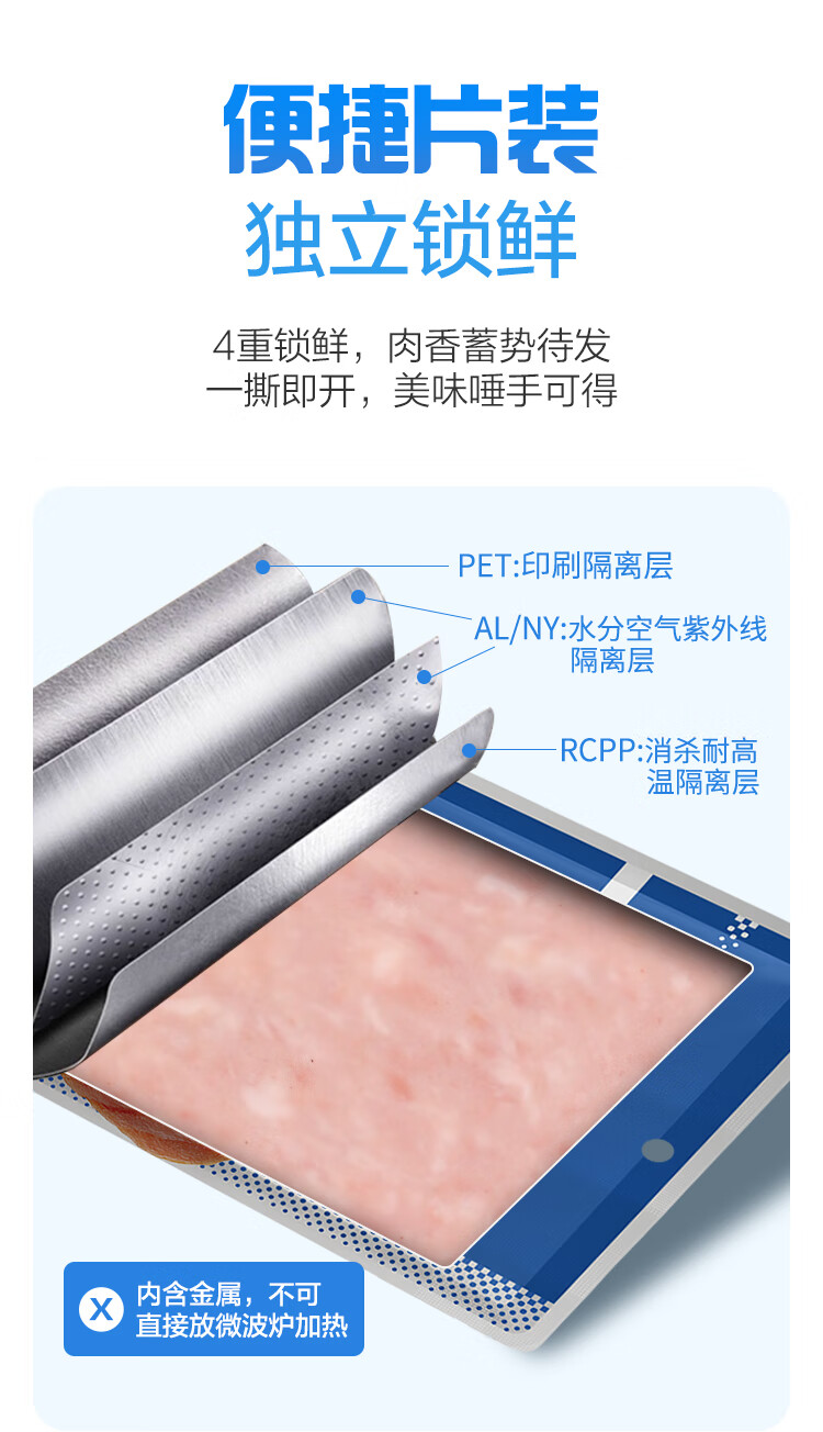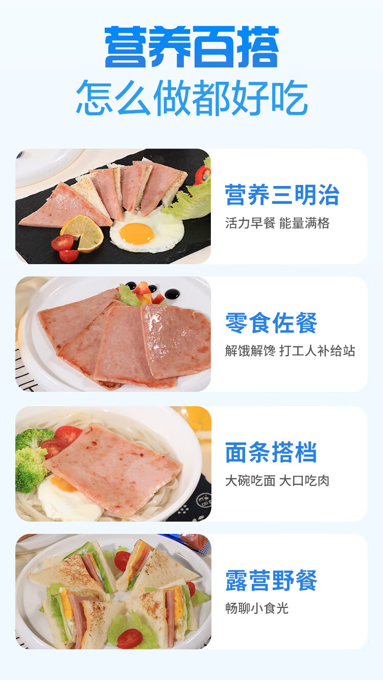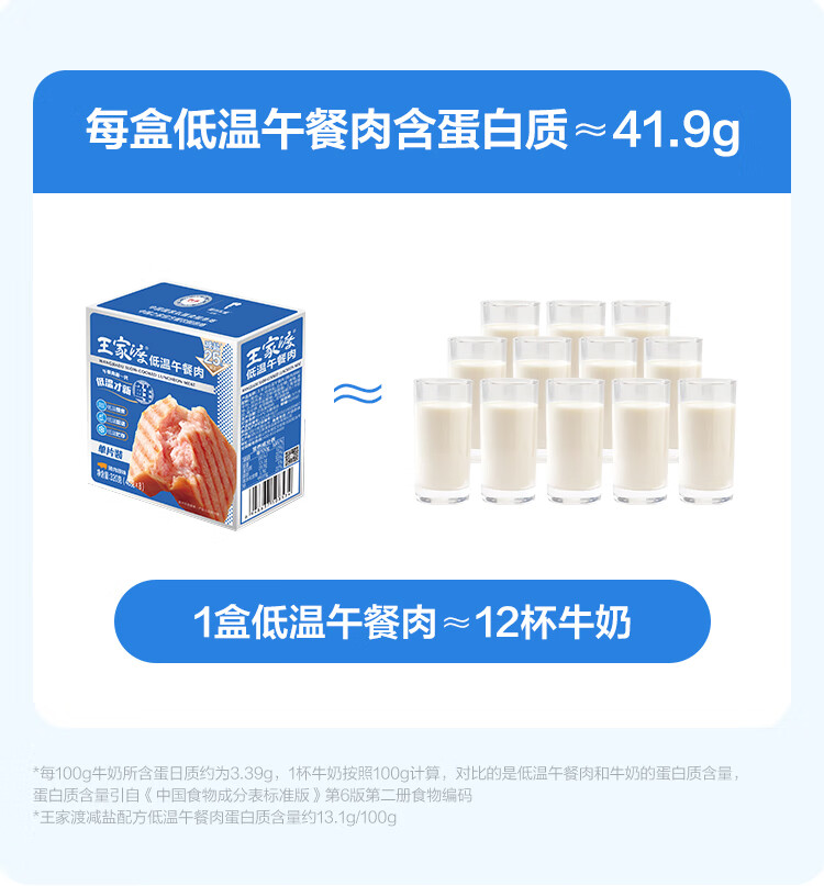 王家渡减盐版 低温午餐肉独立单片装 40g*8片 即食早餐泡面火锅伴侣