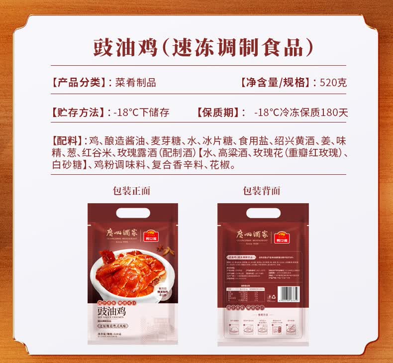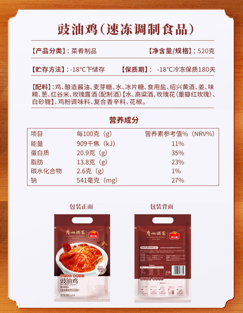 广州酒家利口福 豉油鸡520g 方便菜 快手菜 熟食 熟鸡 三黄鸡 粤式菜式