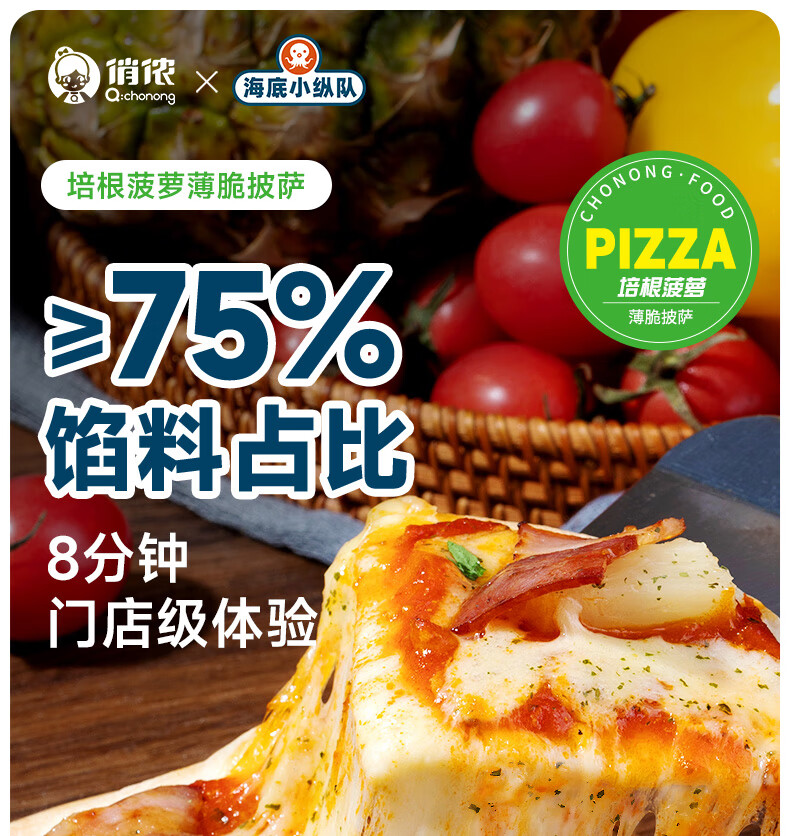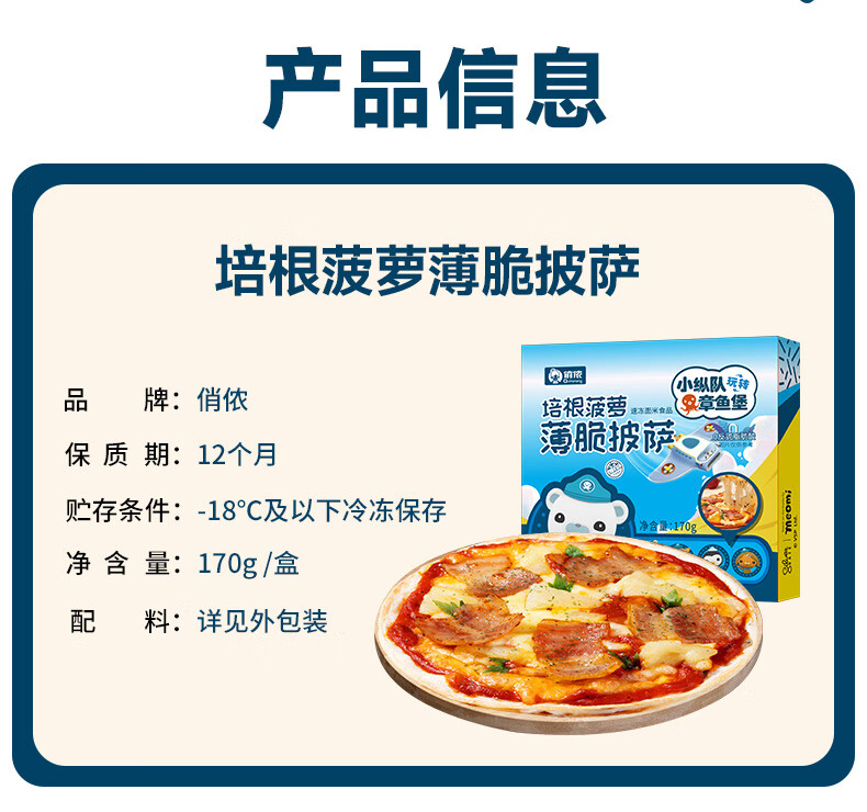 俏侬 培根菠萝披萨芝心薄脆170g 6英寸 馅料比75% 芝士拉丝披萨联名款