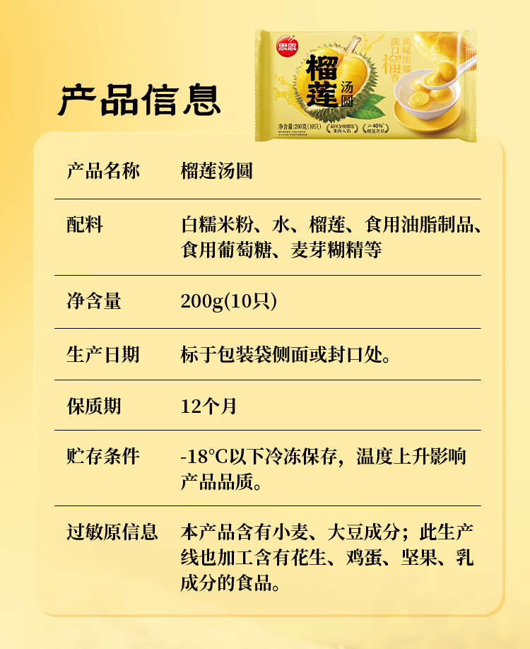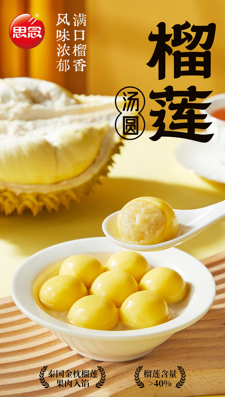思念榴莲汤圆200g*2 20只汤圆 金枕榴莲早餐元宵甜品汤圆速冻食品小吃