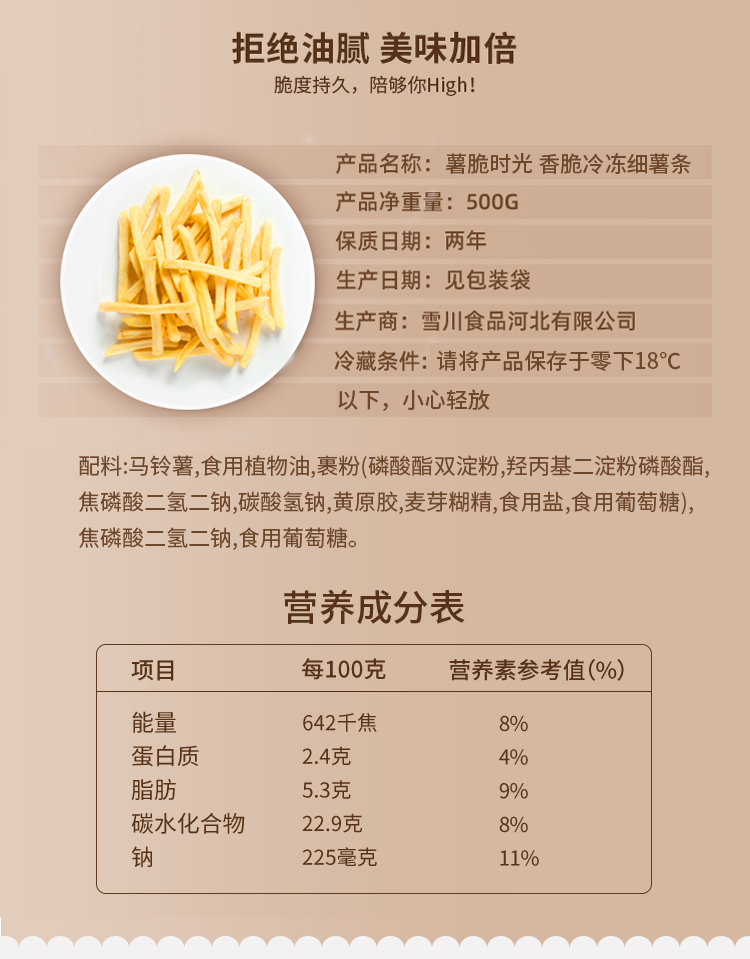 雪川食品(Snow Valley)赤霄裹粉细薯条半成品 1斤/袋 空气炸锅食材油炸食品预制菜