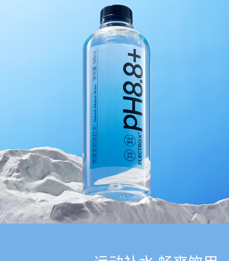 粒刻(ELECTRO X) 天然苏打水pH8.8弱碱性0糖饮用水580ML*20瓶
