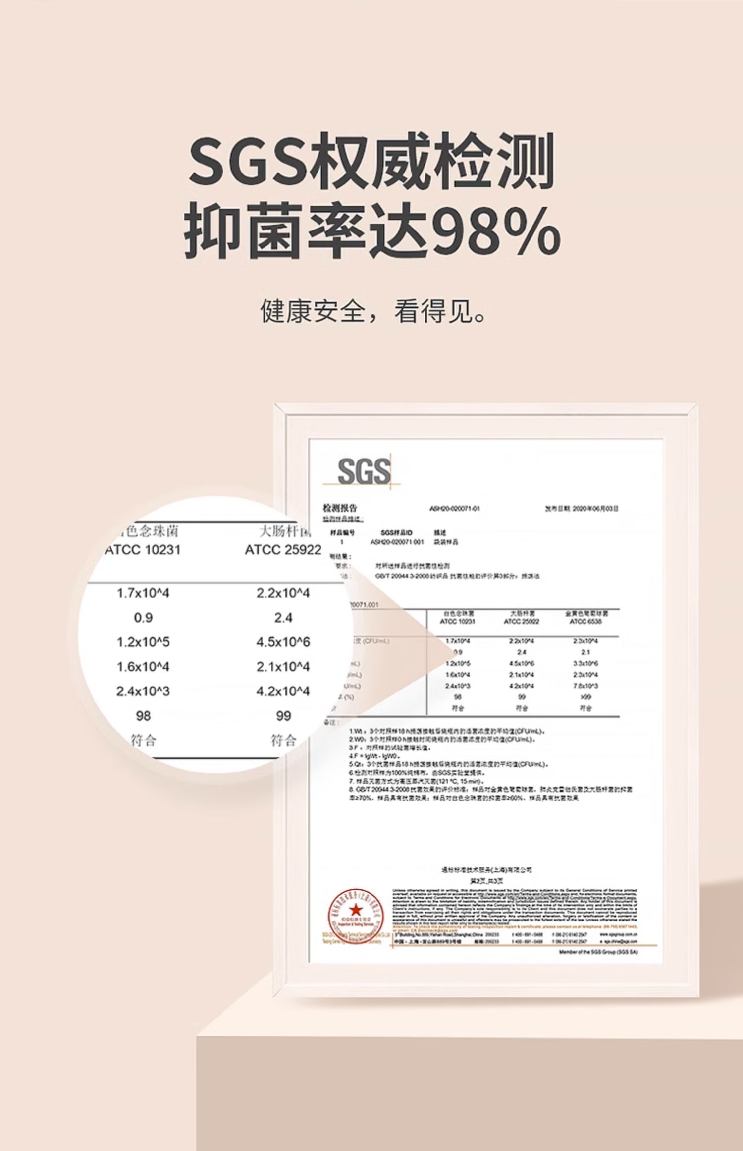 ② SPA级指腹式按摩,抑菌率92%,防螨驱避率86%;