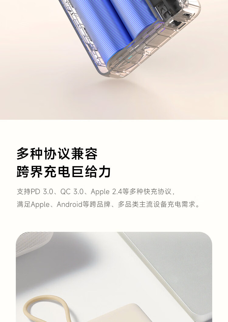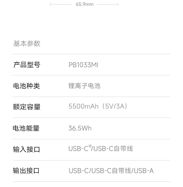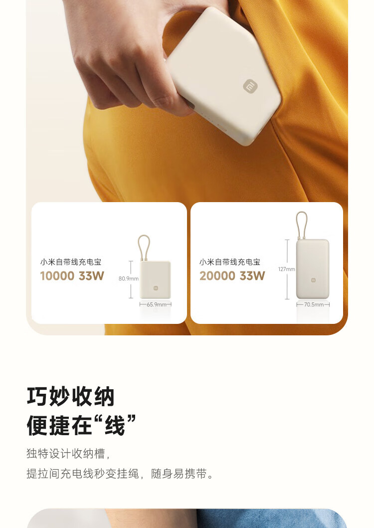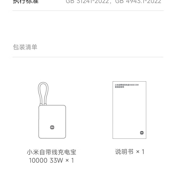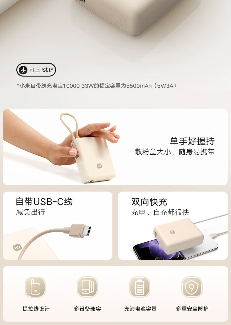 【小米】(MI)【3C认证】小米 充电宝 自带线10000 33W(颜色随机)
