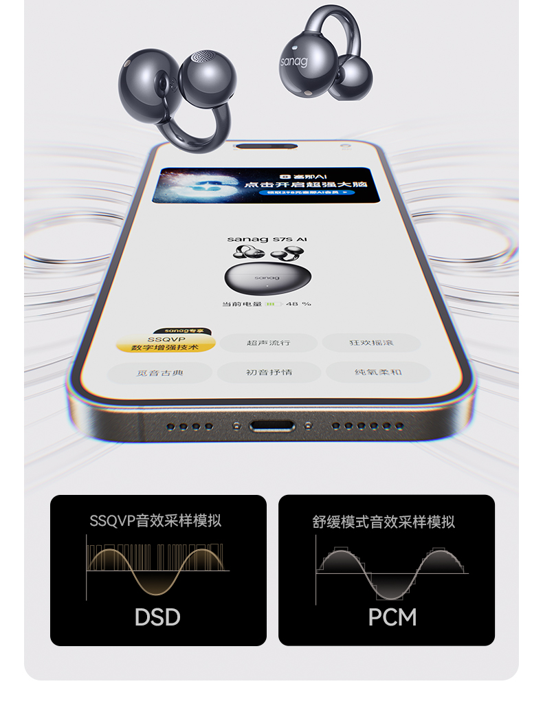 sanag塞那 开放式降噪耳夹蓝牙耳机(黑色)+sanag塞那 便携式蓝牙音箱(颜色随机)+ANKER安克 65W自带线充电宝