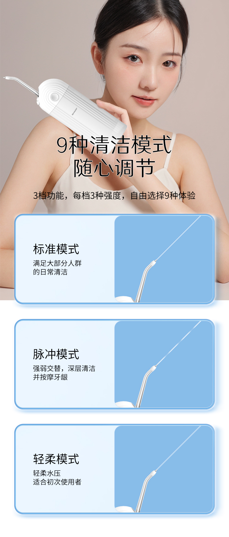 工作模式:标准/脉冲/轻柔。
