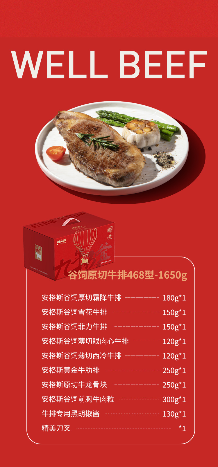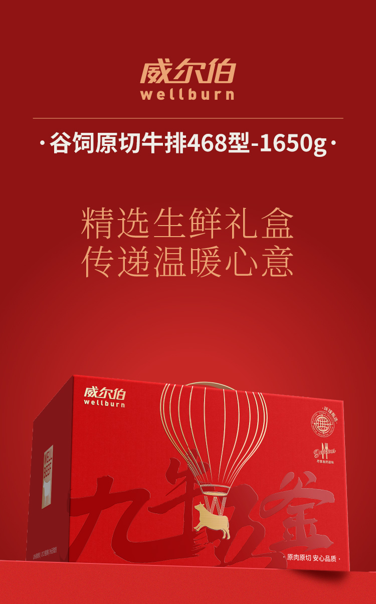 威尔伯谷饲原切牛排468型-1650g
