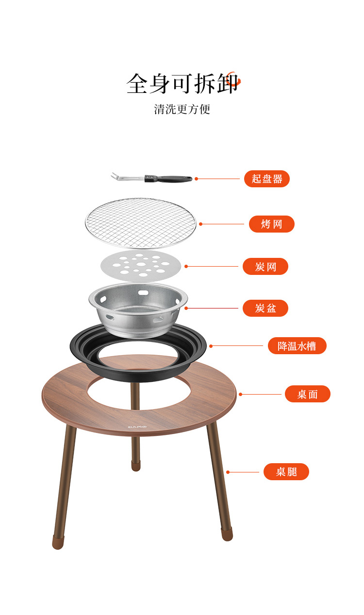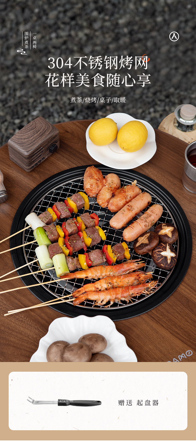 产品材质:实木纤维复合板材+钢+304不锈钢烤网