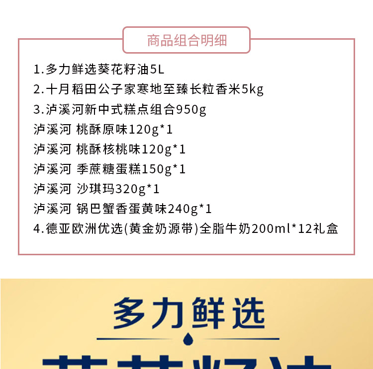 多力/十月稻田/泸溪河/德亚 米油糕点牛奶组合8L+5.95kg